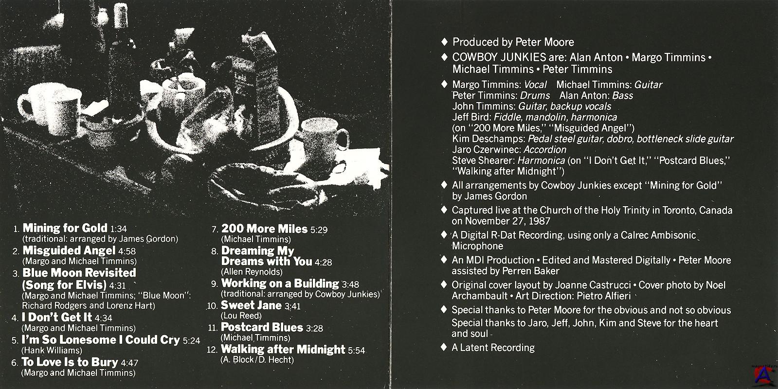 Трэклист 1 Mining For Gold 1:34 2 Misguided Angel 4:58 3 Blue Moon Revisited (Song For Elvis) 4:31 4 I Don"t Get It 4:34 5 I"m So Lonesome I Could Cry 5:24 6 To Love Is To Bury 4:47 7 200 More Miles 5:29 8 Dreaming My Dreams With You 4:28 9 Working On A Building 3:48 10 Sweet Jane 3:41 11 Postcard Blues 3:28 12 Walking After Midnight 5:54