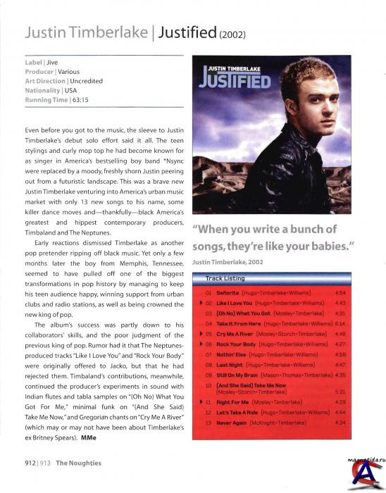 Подробнее Команда n"Sync успешно стартовала в Германии в 1996 году, а уже в 1998 году волна успеха докатилась до США. Вышедший в 2000 году альбом No Strings Attached слушатели, влюбленные в мелодичные и искренние поп-мотивы, просто сметали с прилавков. Однако после выхода яркого хита Girlfriend с диска Celebrity 2001 года команда решила временно приостановить свою деятельность. Тимберлейк был самым заметным представителем n"Sync — самый компанейский и веселый, он также считался и самым симпатичным юношей в коллективе. Поэтому известие о том, что Джастин Тимберлейк решил начать сольную карьеру, очень подбодрило приунывших было фанатов n"Sync. Интерес к работе молодого красавца подогревался и слухами о его романе с тин-поп принцессой Бритни Спирс. Однако пара распалась незадолго до выхода первого сольного альбома Джастина Justified, и пронзительная композиция Cry Me A River посвящена именно бывшей подруге. Летом 2003 года Тимберлейк совершил блистательный тур в поддержку диска Justified совместно с бывшей коллегой по The Mickey Mouse Club Кристиной Агилерой. В то же время он наладил и тесное сотрудничество с The Black Eyed Peas, поучаствовав в создании мега-хита группы Where Is The Love? А вот следующий звездный дуэт Джастина обернулся скандалом — во время исполнения песни с Джанет Джексон Тимберлейк оторвал от ее костюма большую часть, нежели было задумано авторами выступления, обнажив на миг грудь певицы. Он искренне извинился перед публикой несколько раз, однако после этого случая за ним прочно закрепилась слава ловеласа. Позже звание сердцееда Джастин вновь подтвердил романом с кинозвездой Камерон Диаз. Несмотря на негодование масс-медиа, артист лично присутствовал на церемонии вручения Grammy 2004 и унес оттуда две статуэтки. Однако Тимберлейку пришлось на время остановить свою певческую деятельность после операции на горле в 2005 году. Активно сотрудничая с Timbaland, артист приступил к записи диска FutureSex/LoveSounds, который увидел свет в сентябре 2006 года. Предельно откровенный и зажигательный сингл SexyBack представил Джастина в образе "плохого парня" и настоящего сердцееда, значительно увеличив армию его поклонников. В 2010 году Джастин выпустил очень интересный альбом ремиксов, получивший название Essential Mixes. На пластинке были представлены интерпретации композиций, вошедших на студийные работы Justified и Future Sex/Love Sounds. Стоит отметить, что песни зазвучали совершенно по-новому, ведь в работе над Essential Mixes приняли участие такие мастера своего дела, как Tiesto, Paul Oakenfold и многие другие.