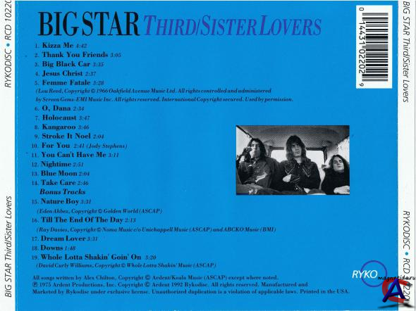 Подробнее Первый альбом группы, «#1 Record»(1972), получил похвальные отзывы, но неэффективный маркетинг Stax Records и ограниченный тираж, сказались на продажах альбома весьма негативно. Это обстоятельство повлияло на отношения в коллективе, и к концу записи второго альбома, «Radio City», группу покинули Крис Белл и Энди Хаммел. После распада группы в 1974 году, через 4 года, первые две записи группы вышли как двойной альбом. В то же время, выходит третий альбом — «Third/Sister Lovers», который имел небольшой коммерческий успех. Вскоре после выхода альбома, в автокатастрофе погиб Крис Белл. Записи Big Star получили неожиданный успех, после того как R.E.M. и многие другие исполнители альтернативного рока признались о влиянии группы на их творчество. В 1992 году, интерес у публики вызвали переиздания альбомов группы от Rykodisc, дополненные соло-работами Криса Белла. В 1993 году Чилтон и Стефенс возродили Big Star, дополнив состав музыкантами из группы The Posies — Йоном Оуэром и Кеном Стрингфеллоу. В этом составе группа дала концерт в Университете Миссури. Группа до сих пор выступает с концертами, проводя турне по Европе и Японии, а также выпустила новый альбом In Space в 2005 году. 17 марта 2010 основатель группы Алекс Чилтон умер от сердечного приступа в Новом Орлеане в возрасте 59 лет.