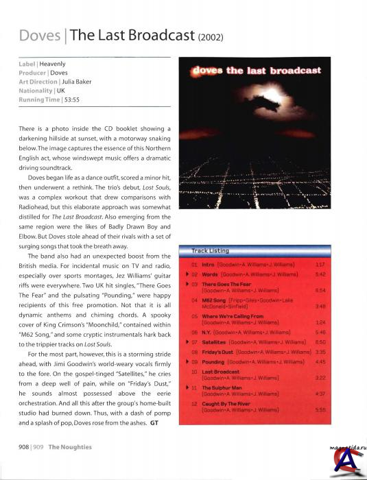 Подробнее Переименовав свое трио в Doves, парни обратились к более жесткому саунду, в основу которого легли гитары, а это не могло понравиться многим старым поклонникам англичан. От Sub Sub была перенята манера использования электроники, которая стала дополнять новые инструменты. Несмотря на то, что в рамках первого проекта ребята прибегали к услугам сессионных вокалистов, в новой группе обязанности постоянного фронтмена на себя взял Джими. Новая формация очень полюбилась британским меломанам и критикам, как только они послушали ее дебютный миньон под названием The Cedar Room (1999). Группой заинтересовались и вскоре пригласили выступить на престижном фестивале Glastonbury в Манчестере. В конце 1999 года Doves предстояло испытать себя на прочность первым продолжительным туром. Отыграв как в качестве хэдлайнеров, так и на разогреве других, более именитых, исполнителей, парни показали, что здорово смотрятся на сцене и собрали приличную армию поклонников. Это был идеальный момент для выпуска полнометражного диска. Релиз пластинки, которую окрестили Lost Souls, состоялся в апреле 2000 года. Целых шесть песен с этого альбома вышли синглами, включая очень популярные композиции Catch the Sun и Man Who Told Everything. 2001 год начался для Doves с получения номинации на Mercury Prize. Позже группа перебралась на лейбл Capitol Records, что было правильным ходом с коммерческой точки зрения. Заключение соглашения было отмечено выпуском сингла There Goes the Fear, который занял третье место в Великобритании. Но даже этот показатель был побит выступлением в чартах вышедшего вскоре второго альбома команды, The Last Broadcast, немедленно оказавшегося на первом месте. Несмотря на то, что диск был очень хорош как в музыкальном, так и в финансовом отношении, в Штатах работа англичан по-прежнему продавалась не самым лучшим образом. Частично поэтому ребята решили внести в свою музыку некоторые изменения. Третий полноформатный альбом Doves, получивший название Some Cities, увидел свет в 2005 году. Представленный на нем материал дал понять, что группа решила выбрать новое направление. Эта попытка нашла одобрение и понимание у большинства критиков, которые признали эту работу самой сильной в истории группы. После этого создалось ощущение, что Doves долго не могли решить, куда им двигаться дальше. Целых четыре года ушло у них на подготовку нового диска, и никто не знал наверняка, как он будет звучать. К удивлению многих, Doves снова обратились к громкой гитарной музыке и записали по-настоящему роковую пластинку, Kingdom of Rust. Альбом поступил в продажу весной 2009 года и получил хорошую прессу. В 2010 году свет увидел The Places Between: The Best Of Doves — мощный сборник лучших работ Doves, записанных музыкантами на протяжении всей карьеры, начиная с дебютной пластинки Lost Souls (2000) и заканчивая лонгплеем 2009 года Kingdom Of Rust. Несомненно, такой сборник стал настоящим подарком для поклонников Doves, да и все любители качественной музыки не будут разочарованы: The Places Between: The Best Of Doves выполнен на высочайшем уровне.