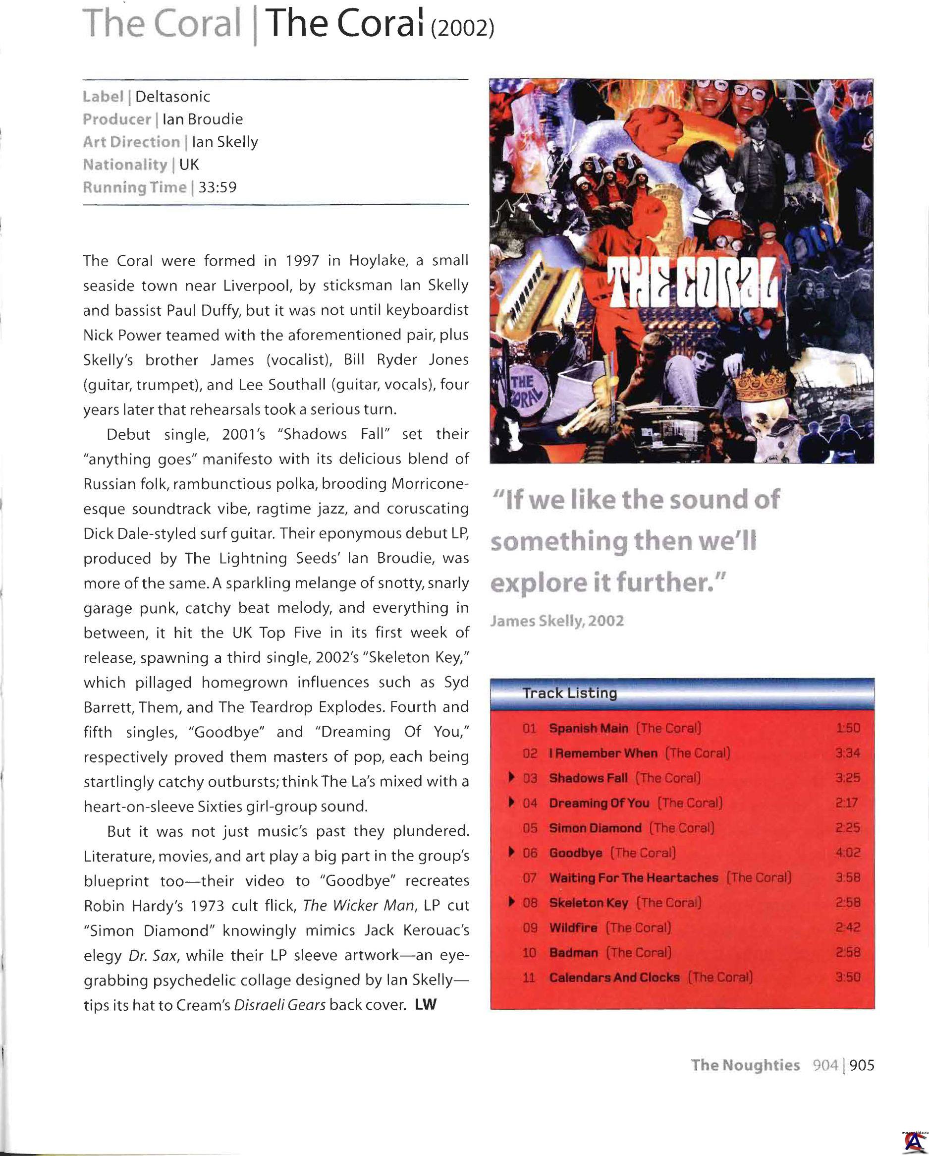 Дебютный одноименный альбом коллектива вышел в 2002 году. The Coral получил хорошие отзывы критиков и в том же году был номинирован на престижную премию Mercury Prize. Тем не менее, группа смогла заявить о себе не только в Великобритании. Так, их композиция Dreaming Of You была включена в саундтрек к знаменитому американскому телесериалу Клиника (Scrubs). Вышедшая в 2003 году вторая студийная работа Magic And Medicine уверенно дебютировала на первом месте в чартах и была прекрасно принята критиками и слушателями. Именно на этом альбоме были представлены такие известные композиции, как Don"t Think You"re The First и Pass It On, а партию скрипки в песне Eskimo Lament исполнила Меган Чайлдз из группы Gorky"s Zygotic Mynci. В 2004 году The Coral выпустили мини-альбом Nightfreak And The Sons Of Becker, записанный меньше, чем за неделю. Некоторые песни с этой пластинки были написаны всего за день, например Grey Harpoon. Таким образом, Nightfreak And The Sons Of Becker является промежуточным звеном между Magic And Medicine и третьим лонгплеем группы The Invisible Invasion (2005).