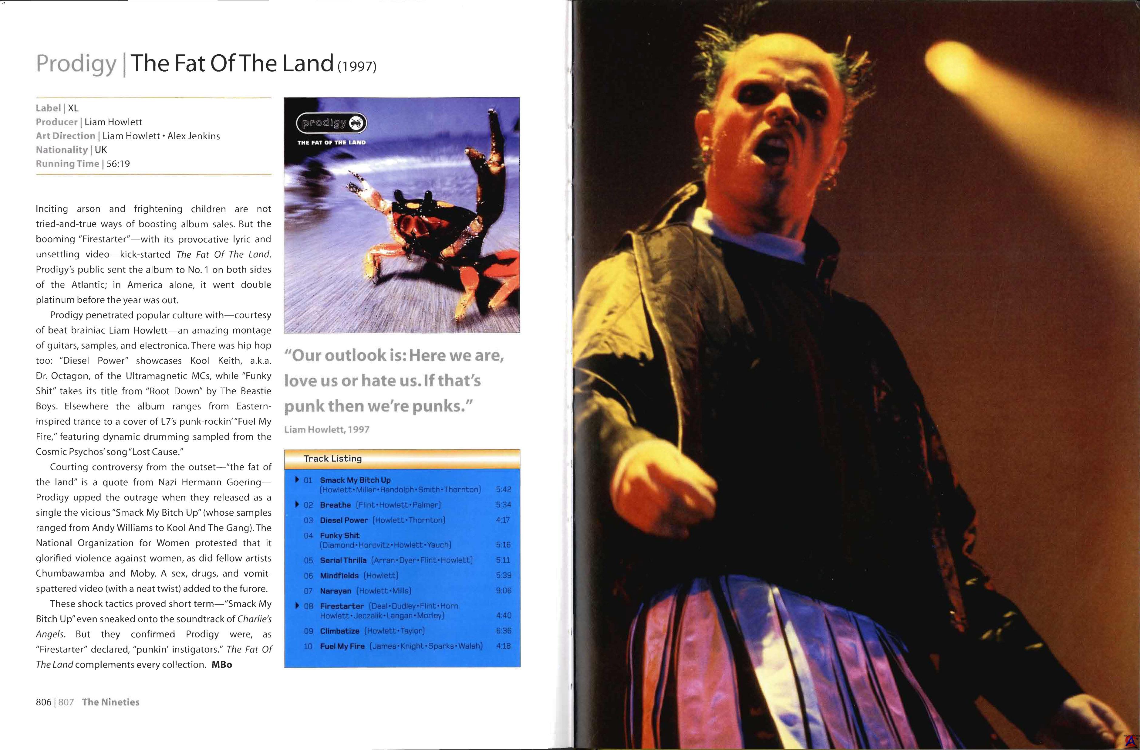 The Fat of the Land — третий музыкальный альбом британского электронного коллектива The Prodigy. Главной особенностью этого альбома является невероятный коммерческий успех для группы. За первую неделю в Англии было продано свыше 300 тысяч копий, а позже — свыше миллиона. Этот альбом вошёл в книгу рекордов Гиннеса, как наиболее быстро распроданный британский альбом. В 1999 году был также номинирован на премию Grammy. Альбом дебютировал номер один на американском Billboard Top 200. Это было большим достижением, поскольку большинство электронных альбомов не в состоянии иметь хороший сбыт в США. Альбом вошёл двойным платиновым титулом, и разошёлся тиражом в США более чем 2 миллиона копий. The Fat of the Land произвел оглушительный фурор среди слушателей электронной музыки и поклонников коллектива. Альбом сочетает очень мощные композиции выполненные в новом звучании, которого добился Лиэм Хоулетт. Волна популярности этого альбома и группы в частности прокатилась по всем европейским дискотекам и в других регионах.