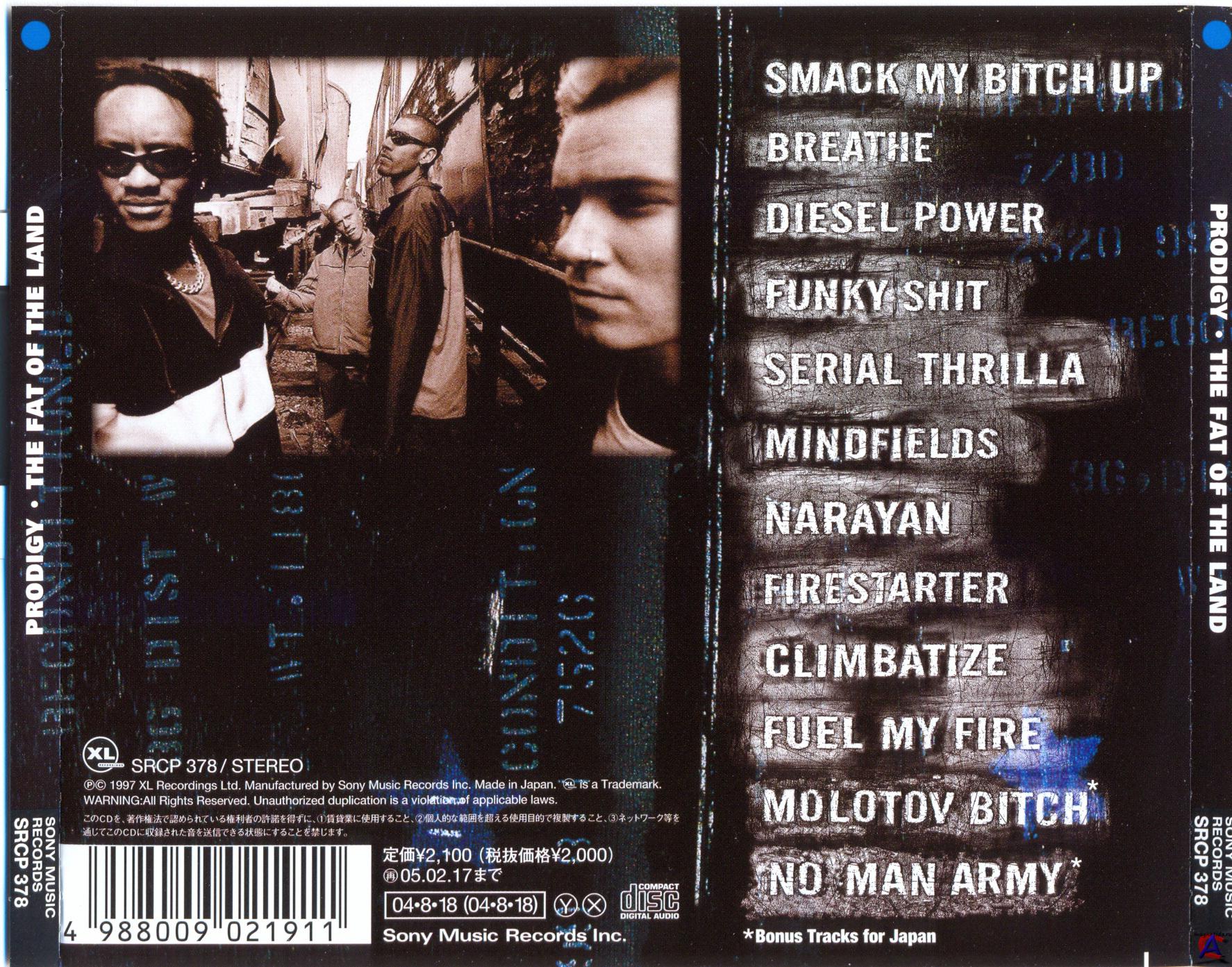 Трэклист 1 Smack My Bitch Up 5:42 2 Breathe 5:34 3 Diesel Power 4:17 4 Funky Shit 5:16 5 Serial Thrilla 5:11 6 Mindfields 5:39 7 Narayan 9:06 8 Firestarter 4:41 9 Climbatize 6:36 10 Fuel My Fire 4:18 11 Molotov Bitch 4:51 12 No Man Army 4:44