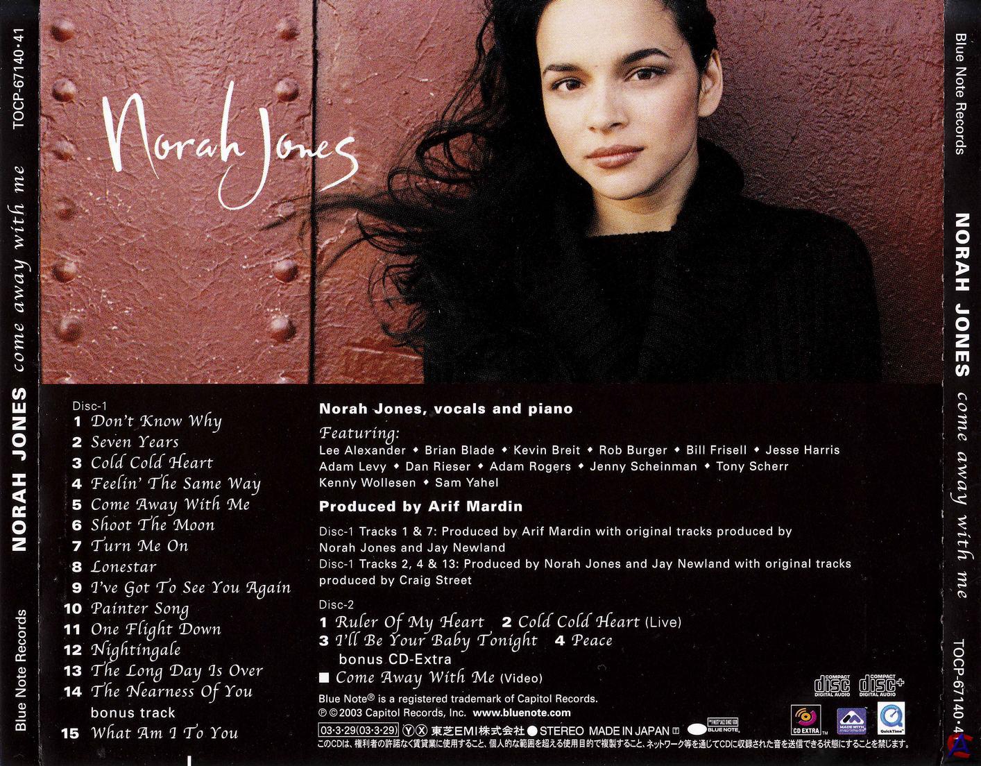 Трэклист 1.1 Don"t Know Why 3:07 1.2 Seven Years 2:25 1.3 Cold Cold Heart 3:39 1.4 Feelin" The Same Way 2:58 1.5 Come Away With Me 3:18 1.6 Shoot The Moon 3:57 1.7 Turn Me On 2:35 1.8 Lonestar 3:06 1.9 I"ve Got To See You Again 4:13 1.10 Painter Song 2:42 1.11 One Flight Down 3:06 1.12 Nightingale 4:12 1.13 The Long Day Is Over 2:45 1.14 The Nearness Of You 3:11 1.15 What I Am To You 2:42 Bonus CD 2.1 Ruler Of My Heart 3:01 2.2 Cold Cold Heart (Live) 4:40 2.3 I"ll Be Your Baby Tonight 3:18 2.4 Peace 3:50