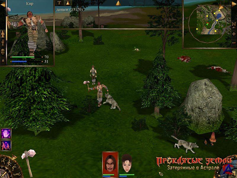 Проклятые земли: Затерянные в астрале Пока Зак-Избранный («Проклятые земли») ведёт бои для разгадки своей тайны, Кир и Кель на аллодах решают свои проблемы… Действие происходит в целом по пятам Зака (на Суслангере Кир появляется раньше Зака, на остальных островах позже). Кир — джун, родом из Джиграна. Вся его семья попала в плен к некроманту Фирезу, жаждущему власти над всем миром. Кир только в конце узнает о том, что Фирез, также как и он, — джун, но другие джуны изгнали его, так как считали, что занятие некромантией недостойно истинного джуна. Системные требования: Pentium 400 Video 8Mb HDD 1.2Gb