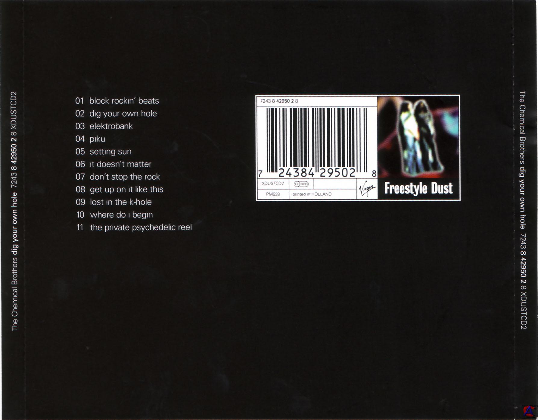 Трэклист 1 Block Rockin" Beats 5:13 2 Dig Your Own Hole 5:27 3 Elektrobank 8:18 4 Piku 4:55 5 Setting Sun 5:28 6 It Doesn"t Matter 6:14 7 Don"t Stop The Rock 4:49 8 Get Up On It Like This 2:46 9 Lost In The K-Hole 3:52 10 Where Do I Begin 6:56 11 The Private Psychedelic Reel 9:21
