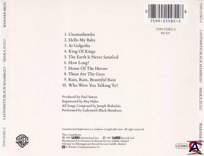 Жанр: Vocal, African Аудиокодек: MP3 Битрейт аудио: 320 kbps Частота дискретизации: 44.1KHz Количество песен: 10 Продолжительность: 00:36:46 Released: 1987 Label: Warner Bros. Records – 9 25582-2 Format: CD, Album Country: USA