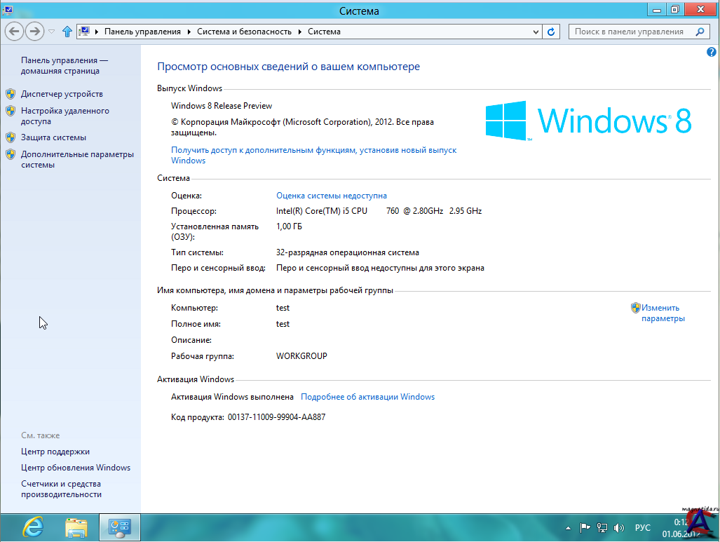 Название: Windows 8 Release Preview Год выпуска: 2012 Платформа: Windows x86/x64 Язык интерфейса: RUS Лекарство: Присутствует (Смотрите в спойлере "Установка") Описание: Windows 8 Release Preview - Это операционная система Windows, переосмысленная и построенная на базе быстрой и надежной Windows 7. С совершенно новым интерфейсом для сенсорных устройств. Новая Windows для новых устройств. Можно попробовать прямо сейчас — независимо от того, устанавливаете ли вы ее впервые или переходите от Windows 8 Consumer Preview. Контрольные суммы Windows8-ReleasePreview-64bit-Russian.iso CRC32: E0DEC11B MD5: BE3688FB96301FF24B2BD88560312801 SHA-1: 10F9F738593BC740561DA8AB247F5CEF3ABA65BB Windows8-ReleasePreview-32bit-Russian.iso CRC32: 182A2320 MD5: DA7745F6EA7AB5C99B5C57F6539E7780 SHA-1: 7A473B0D7F5DB3E949915D2A2F361FAE92A52538 Сиситемные иребования Операционная система: Windows 8 Процессор: Pentium 4 1.5 ГГц или больше Память: 512 МБ или болше Видеокарта: 16 бит, 1280x800 Свободное место на ЖД: 10 ГБУстановка: Записать на диск и установить. Ключ продукта: TK8TP-9JN6P-7X7WW-RFFTV-B7QPF