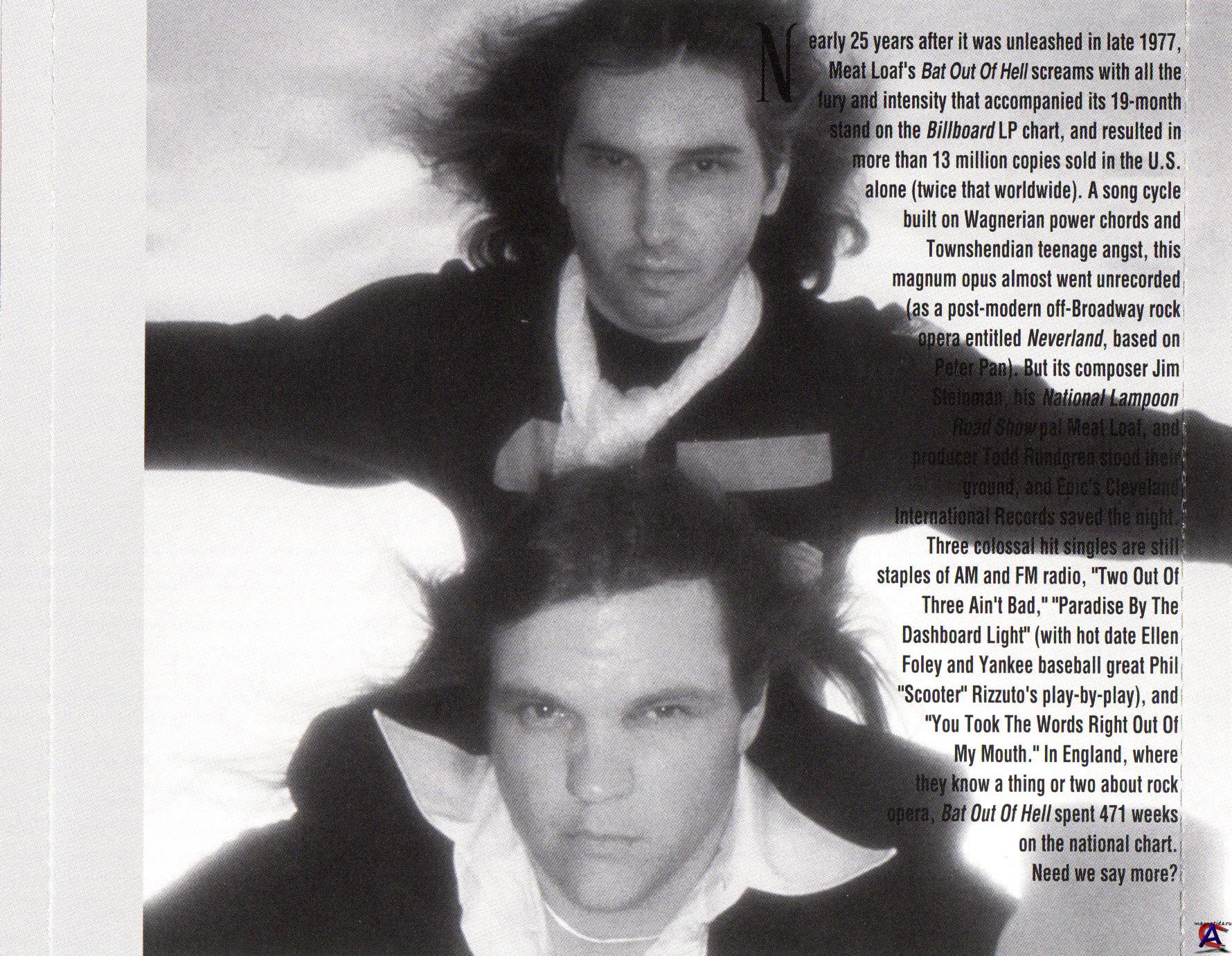 Bat Out Of Hell — "Летучая мышь из ада" — альбом 1977 года — плод совместного творчества американского рок-певца и актера Майкла Ли Эдея, более известного как Meat Loaf ("Мясной рулет") и Джима Стейнмана (Jim Steinman), продюссера, композитора, сочинителя нескольких известных хитов. Альбом продюссировал Тодд Рундгрен (Todd Rundgren), американский музыкант, певец, композитор и продюссер.