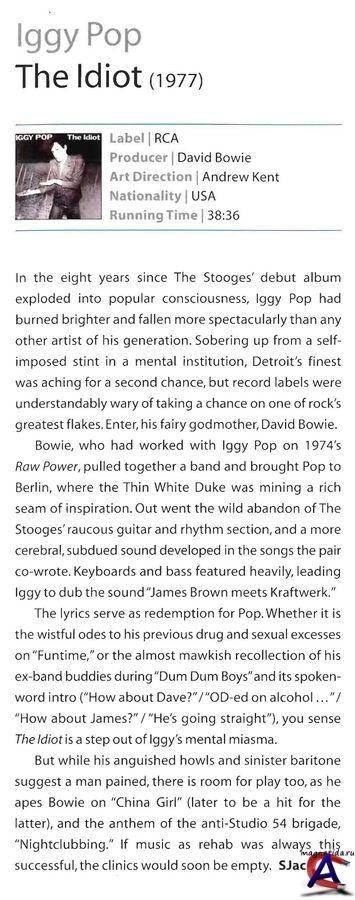 Выпуск и влияние Хотя большая часть альбома The Idiot была записана, до альбома Low, первого произведения «Берлинской Трилогии Боуи», альбом Боуи был выпущен первым, в январе 1977, в то время как выпуск альбома Попа был отложен до марта. Лоран Тибо (англ. Laurent Thibault) выразил мнение, что «Дэвид не хотел, чтобы люди думали, он был вдохновлен альбомом Игги, хотя на самом деле все так и было». В 1981 году редакторы New Musical Express Рой Карр и Чарльз Шаар Мюррей предположили, что электронное звучание The Idiot было «пионером» на Low, а Николас Пегг, в 2000 году, охарактеризовал альбом как «ступень между Station to Station и Low». «The Idiot» достиг #30 в Великобритании, впервые альбом Игги Попа попал в Top40. В хит-парадах США, альбом достиг #72. «Sister Midnight» и «China Girl» были выпущены в качестве синглов в феврале и мае 1977 года, соответственно — оба с одинаковой стороной «Б», «Baby». Биограф Пол Тринка (англ. Paul Trynka) писал, что «The Idiot» «будет оставаться альбомом, который больше уважали чем любили, обзоры, в основном, были нейтральные», альбом стал «прототипом души пост-панка». После выхода альбома, журнал Rolling Stone назвал его «самым диким обвинением рок позерства за всю историю… удовольствием некрофила».