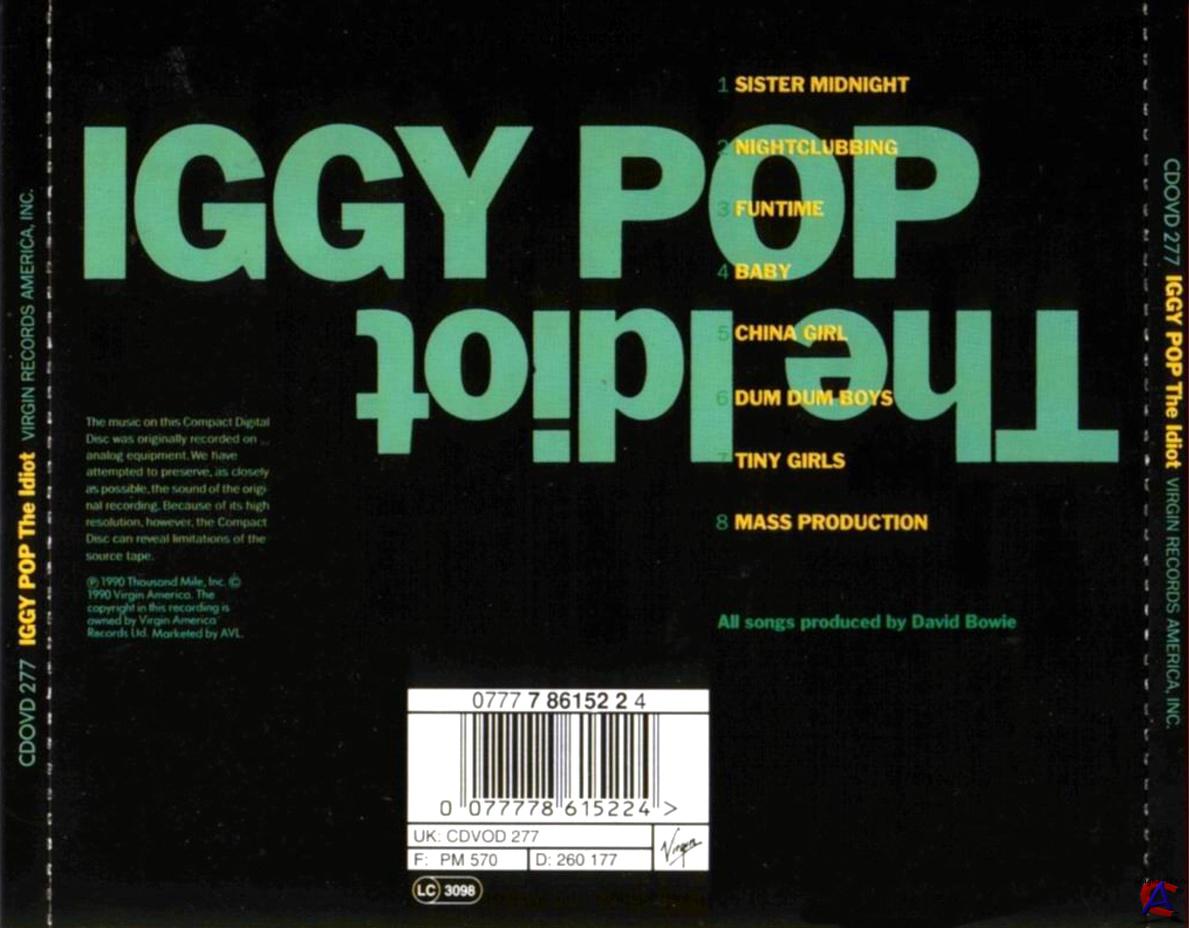 Подробнее Производство Заглавная композиция альбома «Sister Midnight», была написана Боуи, Попом и гитаристом Карлосом Аломаром, вживую, на одном из выступлений в поддержку тура «Station to Station» Дэвида Боуи, в начале 1976 года. В июле того же года, после окончания тура, Боуи и Поп перебрались в Шато д’Эрувиль, в то же самое место, где Боуи записал альбом Pin Ups (1973) и вскоре написали большую часть песен для альбома Low, и начали сочинять остальную часть материала, который позже стал альбомом The Idiot. В замке к ним присоединились Лоран Тибо на басу и Мишель Сантагели на барабанах, которым дали минимальные руководства, от них требовалось, добавить грубости в музыкальные треки, уже записанные Боуи, часто в альбом включали записи сделанные с первого дубля. Запись альбома продолжалась в августе, на студии Musicland в Мюнхене, с гитаристом Филом Палмером, который сотрудничал с Попом и Боуи и стимулировал их творчество. Он никогда не видел их в студии днем, это вызывало его тревогу («Vampiric» — идеальное слово, описывающее происходящее, сказал он позже). Наложение регулярных ритм-секций Боуи, Карлоса Аломара, Денниса Дэвиса и Джорджа Мюррея, а также окончательный микс Тони Висконти, состоялись в Берлине на студии Hansa Studio by the Wall. Учитывая почти демонстрационное качество записи, пост-продакшн работы, по словам Висконти больше напоминали, «работы по восстановлению записи, чем творческое микширование» (англ. «more of a salvage job than a creative mixing»). Из-за своей неоднозначной, а в некоторых случаях неуказанной на пластинке информации относительно авторства, на протяжении многих лет возникали заблуждения, кто внес какой вклад в альбом. Хотя общее убеждение, что Поп написал песни, а Боуи написал музыку, как правило, точны. Но их подход иногда менялся, например в песнях, «Dum Dum Boys», для которой Поп написал музыку и «Sister Midnight», для которой Боуи написал слова. Фото для обложки альбома было вдохновленно произведением Эриха Хеккеля Roquairol, часто предполагается, что оно было сделано Дэвидом Боуи, но на самом деле фотографировал Энди Кент. Список музыкантов не был указан на обложке, в результате чего, появились путаница в отношении музыкантов. Однако последние работы биографов, Уго Уилккена, Пола Тринке и Николса Пегга показывают в целом согласованный список участвующих музыкантов.