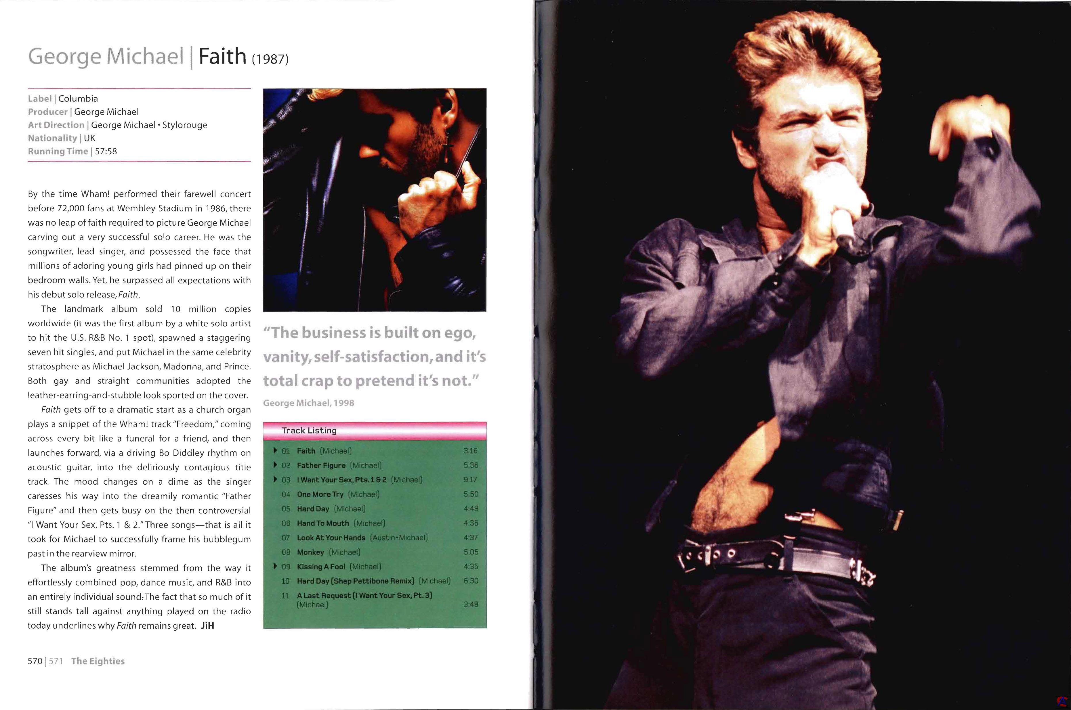 Подробнее После распада группы «Wham!» Дж. Майкл посвятил большую часть 1987 года написанию и записи песен для своего переломного проекта. Помимо участия в записи большинства инструментальных партий альбома он написал и спродюсировал каждый трек, за исключением одного — «Look At Your Hands», который был написан в соавторстве с Дэвидом Остином. Благодаря использованию при записи прогрессивной для своего времени аппаратуры, Faith оказался первой цифровой записью музыканта. Современный R&B-альбом проявил вокальный талант Дж. Майкла с абсолютно новой стороны. Проникновенные тексты песни этого альбома отразили многогранные взаимоотношения их автора с современным миром. 1988 год стал годом Джорджа Майкла. Успех альбома сделал его одним из ведущих авторов и исполнителей того времени. Некоторые даже называли его преемником Элтона Джона. Этот альбом принёс Джорджу Майклу всеобщее признание. На 31-й церемонии вручения премии Grammy в 1989 г. он получил премию «Альбом года». Джордж Майкл получил в том же году ещё три премии American Music Award: Лучший поп/рок исполнитель, Лучший соул/ритм-н-блюз исполнитель и Лучший соул/ритм-н-блюз альбом.