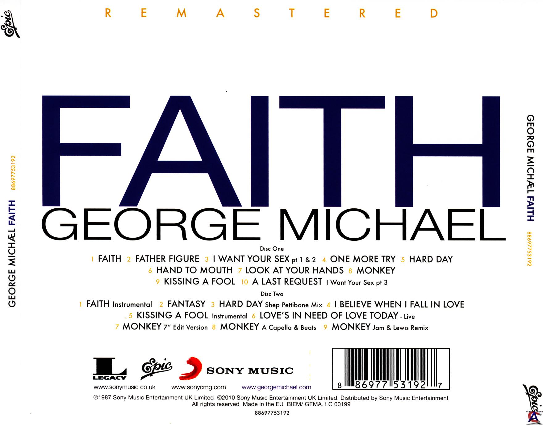 Трэклист CD1 1-1 Faith 3:13 1-2 Father Figure 5:36 1-3 I Want Your Sex (Pt 1 & 2) 9:17 1-4 One More Try 5:50 1-5 Hard Day 4:48 1-6 Hand To Mouth 4:36 1-7 Look At Your Hands 4:37 1-8 Monkey 5:06 1-9 Kissing A Fool 4:40 1-10 A Last Request (I Want Your Sex Pt 3) 3:47 CD2 2-1 Faith (Instrumental) 3:07 2-2 Fantasy 5:02 2-3 Hard Day (Shep Pettibone Mix) 9:05 2-4 I Believe When I Fall In Love 7:05 2-5 Kissing A Fool (Instrumental) 4:37 2-6 Love"s In Need Of Love Today (Live) 4:46 2-7 Monkey (7" Edit Version) 4:52 2-8 Monkey (A Capella & Beats) 7:30 2-9 Monkey (Jam & Lewis Remix) 8:06