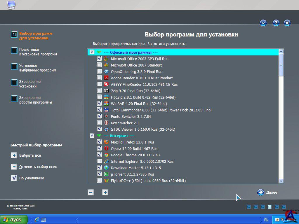 Сразу после установки системы, возможна установка различных программ через программу BS Post Installer: