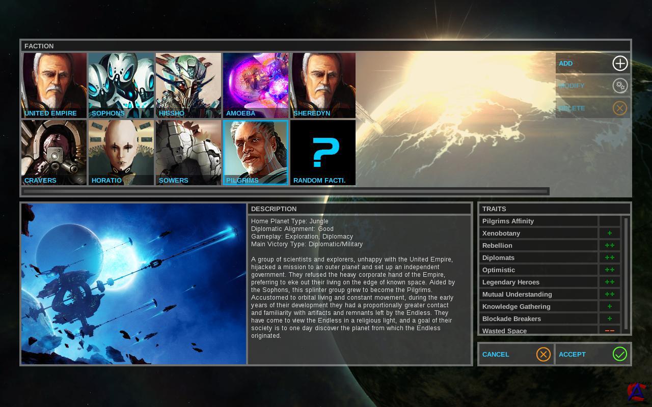 Особенности игры Endless Space – космическая стратегия в смешанном времени (то есть и пошаговая, и в реальном времени). В основе сюжета противостояние восьми цивилизаций, каждая из которых стремится захватить власть над звездами, вам придется управлять одной из них, и привести нацию к победе. В игре существуют разные способы стать победителем. Например, вы можете победить не вступая в битву – с помощью торговли или дипломатии, а можете накопать много-много артефактов ушедших эпох, или стать доминирующей добывающей фракцией, которая контролирует огромное количество полезных ископаемых. Можно унизить врага, раньше всех открыв какую-либо сверхтехнологию, что позволит победить в научном плане, ну а можно просто построить два-три боевых флота с мощнейшими орудиями и отправиться покорять галактику с лазерами, ракетами, и прочими средствами донесения ваших аргументов до оппонента. Притом каждая дорога действительно работает, пусть и не у всех держав – некоторые предпочитают вести войну, какие-то вообще для нее не приспособлены, а третьи могут делать и то и то, вот только крайне средне...