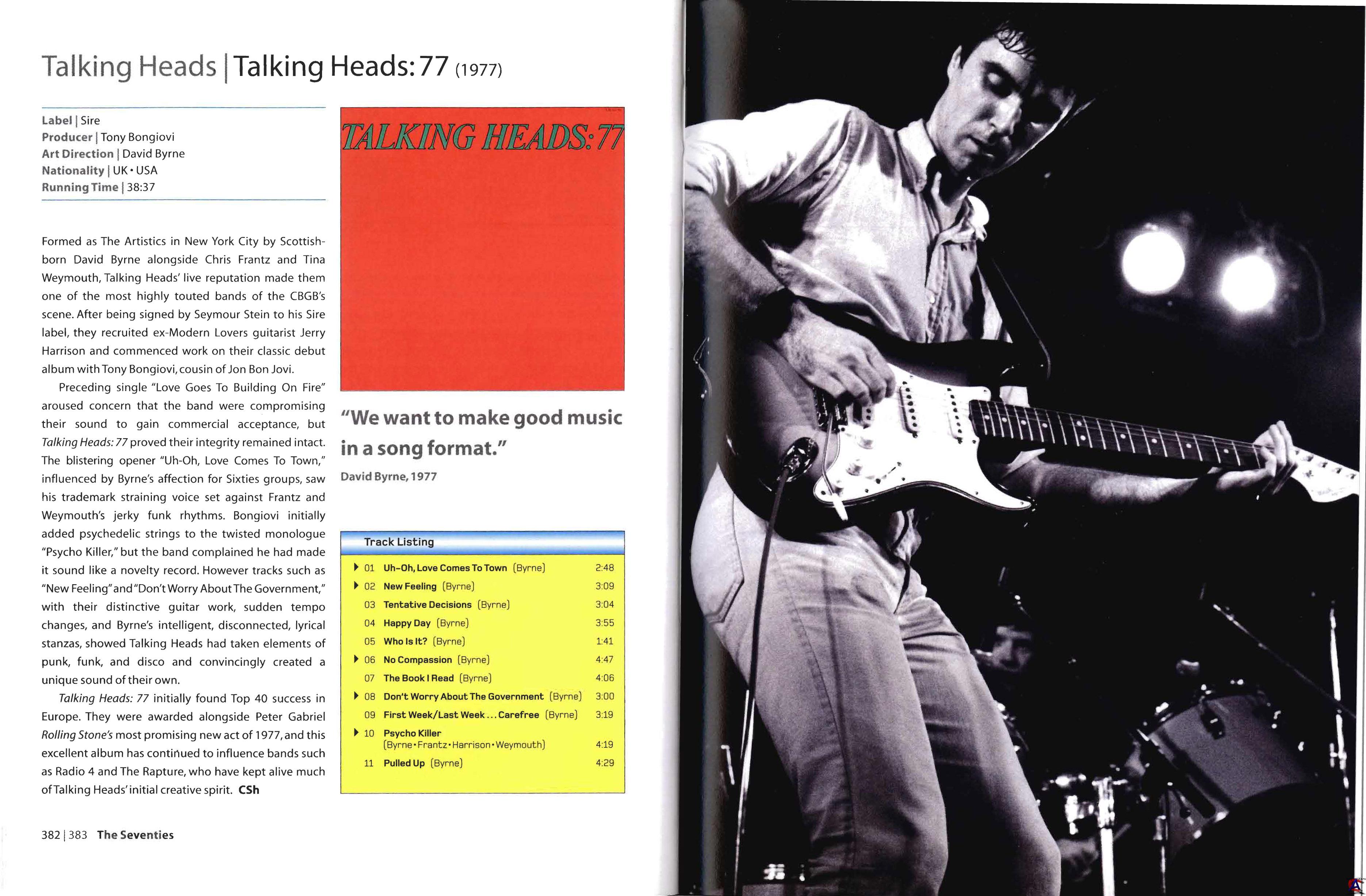 Трэклист CD Side CD1 Uh-Oh, Love Comes To Town 2:48 CD2 New Feeling 3:09 CD3 Tentative Decisions 3:04 CD4 Happy Day 3:55 CD5 Who Is It? 1:41 CD6 No Compassion 4:47 CD7 The Book I Read 4:06 CD8 Don"t Worry About The Government 3:00 CD9 First Week / Last Week... Carefree 3:19 CD10 Psycho Killer Written-by [Some Help From] – Chris, Tina 4:19 CD11 Pulled Up 4:29 Bonus Tracks (CD Side Only) CD12 Love ’ Building On Fire Arranged By [Horns] – Brad Baker, Lance Quinn Bells – David Byrne Tambourine – Chris Frantz 2:57 CD13 I Wish You Wouldn"t Say That 2:36 CD14 Psycho Killer (Acoustic) Cello – Arthur Russell Written-by [Some Help From] – Chris, Tina 4:30 CD15 I Feel It In My Heart 3:19 CD16 Sugar On My Tongue 2:36