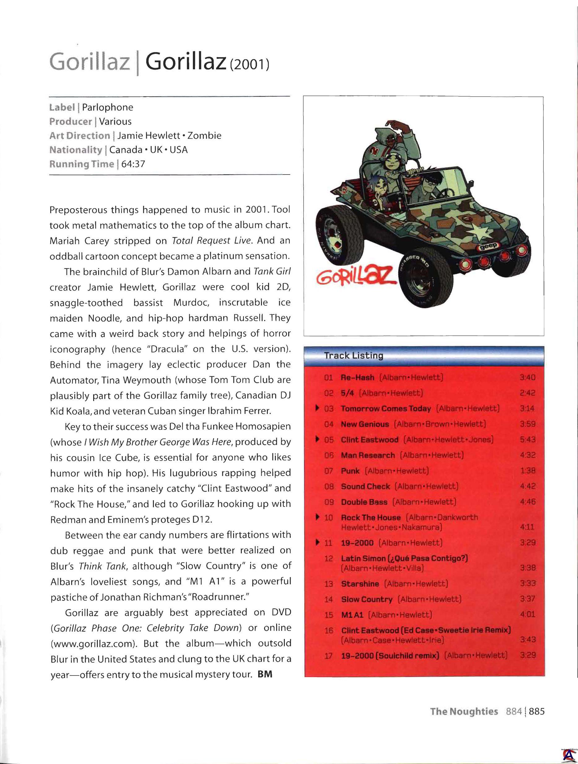 Трэклист 1 Re-Hash 3:38 2 5/4 2:40 3 Tomorrow Comes Today 3:12 4 New Genious (Brother) 3:57 5 Clint Eastwood 5:40 6 Man Research (Clapper) 4:32 7 Punk 1:36 8 Sound Check (Gravity) 4:40 9 Double Bass 4:44 10 Rock The House 4:09 11 19-2000 3:27 12 Latin Simone (Que Pasa Contigo) 3:36 13 Starshine 3:31 14 Slow Country 3:35 15 M1 A1 3:49 16 Dracula 4:42 17 Left Hand Suzuki Method 3:08 18 19-2000 (Soulchild Remix) 3:29 19 Clint Eastwood (Ed Case Refix) 4:30