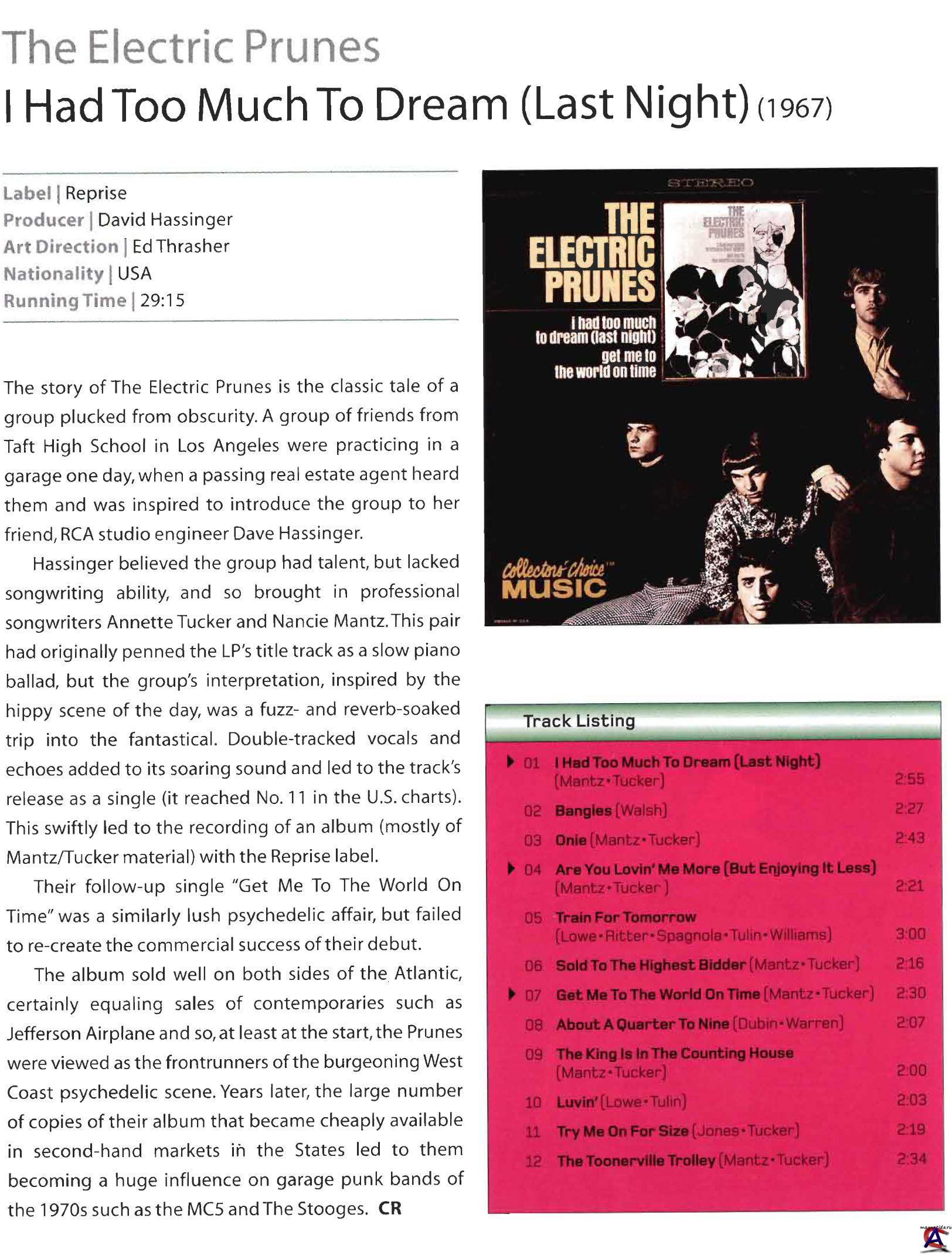 Electric Prunes сделали в дальнейшем все свои записи 1960-х годов. После записи альбома группа отправляется в затяжное турне по США, проведя в дороге весь 1967 год, отвлекшись только на запись второго альбома —
