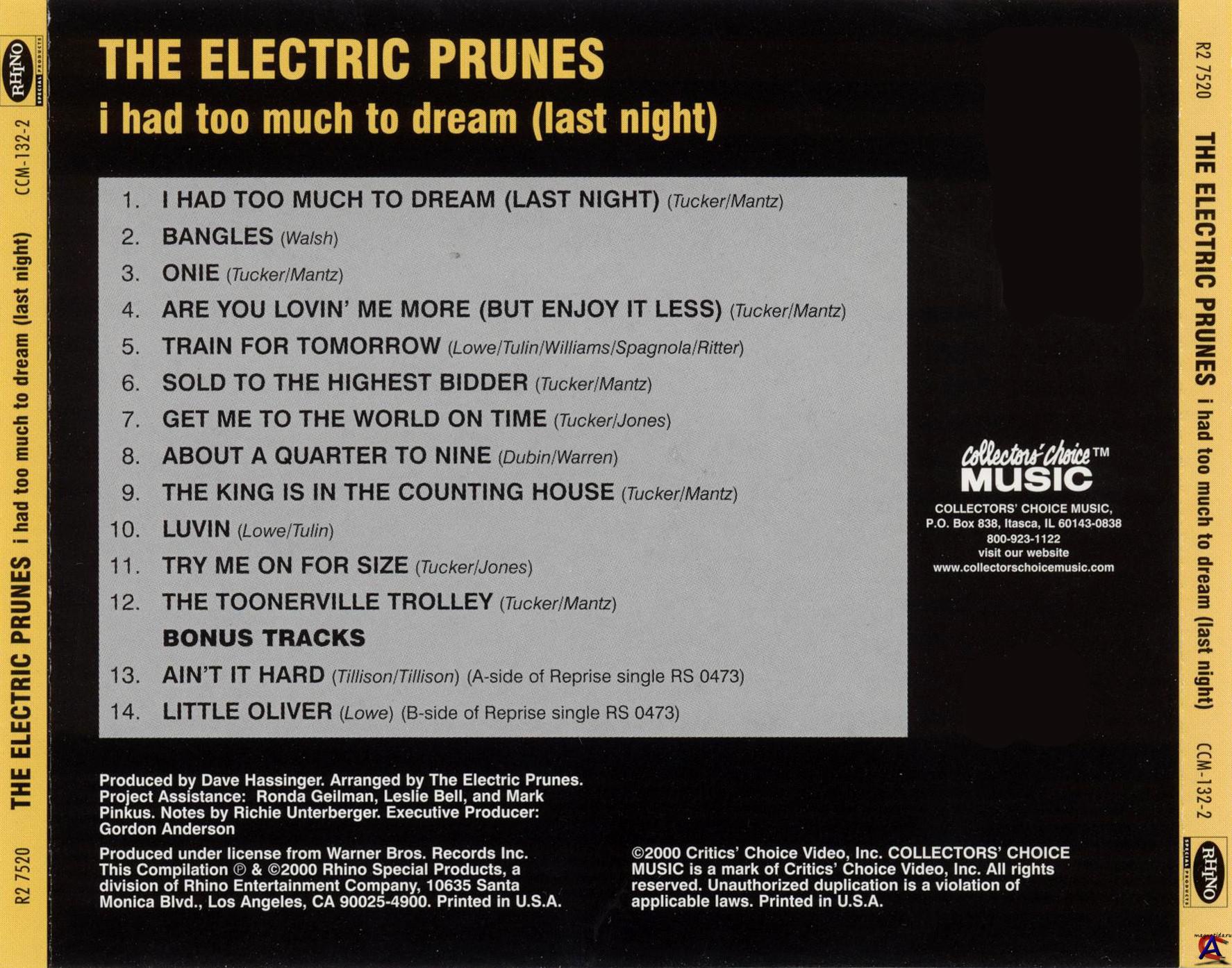 Electric Prunes составляли вокалист Джеймс Лоу, гитарист Кен Уильямс и басист Марк Тулин, которые жили в Сан Фернандо Валли — это чуть севернее Сан-Франциско. Их первые проекты назывались