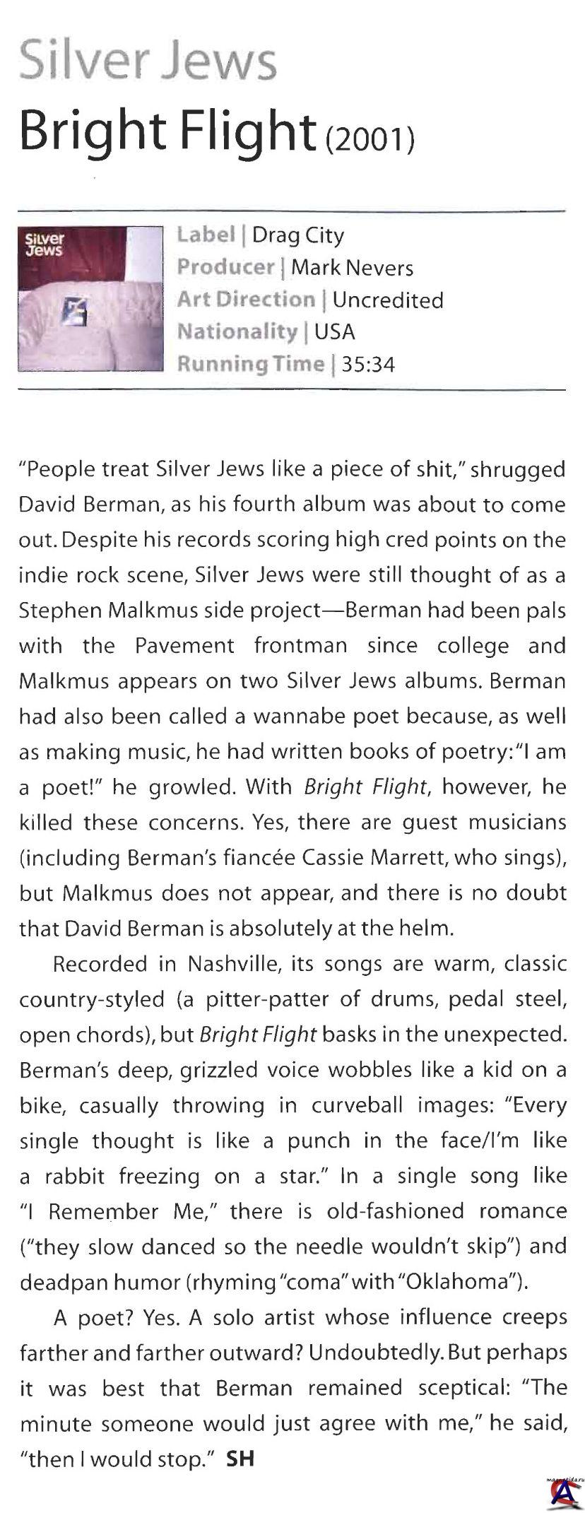 Silver Jews — американская рок-группа, образованная в 1989 году в Нью-Йорке Дэвидом Берманом (единственным постоянным участником коллектива), Стивеном Малкмусом и Бобом Настановичем, участниками Pavement, и исполняющая (согласно Allmusic) «чудесную смесь инди-/кантри- и lo-fi-рока». Группа выпустила шесть студийных альбомов, последний из которых, Lookout Mountain, Lookout Sea, вышел в 2008 году на Drag City Records. Берман, кроме того, известен как поэт: его сборник «Actual Air» (1999) получил высокие оценки литературных критиков (в частности, в журналах New Yorker и GQ). Своё единственное турне (по США и Британии) группа провела в 2006 году.