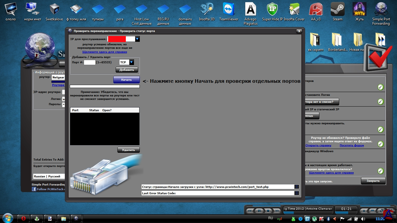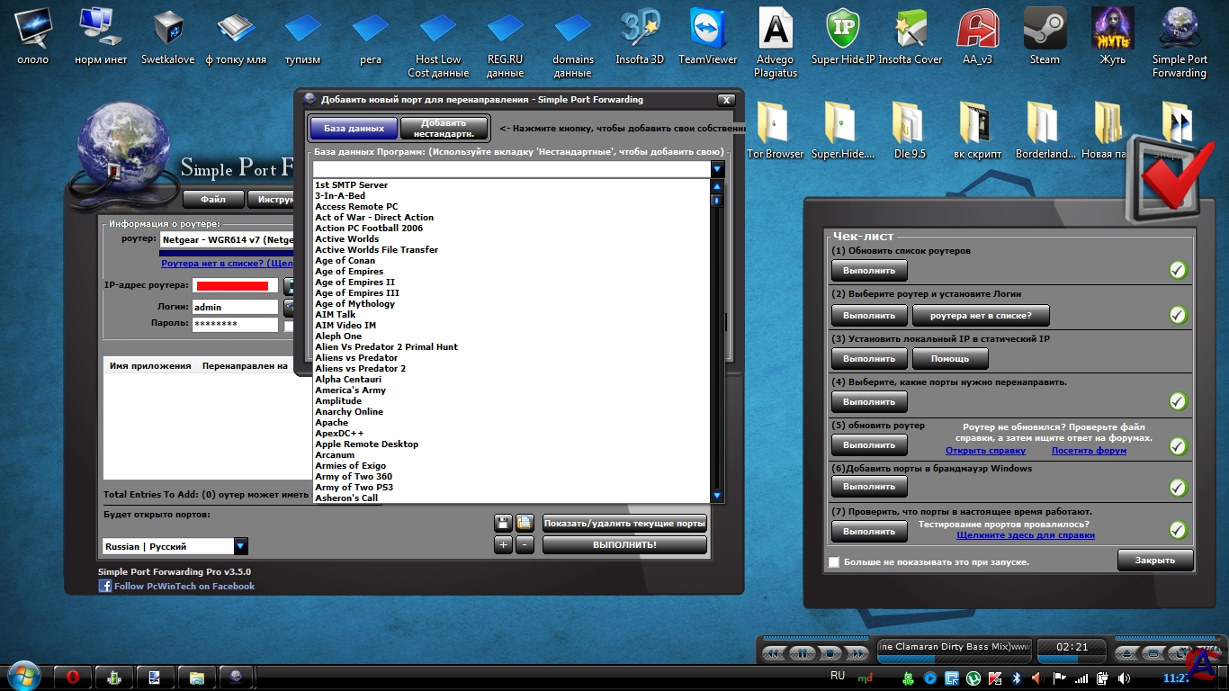 Версия: 3.5.0 Назначение: Переназначение портов Язык интерфейса: Мульти (русский присутствует) Официальный сайт: www.simpleportforwarding.com Таблетка: Присутствует Описание: Simple Port Forwarding – утилита для переназначения портов модемов, роутеров (маршрутизаторов) и перенаправления интернет-трафика с одного порта на другой. Simple Port Forwarding осуществляет автоматизацию процесса переназначения портов. Утилита пригодится, прежде всего, тем пользователям, которые скачивают информацию из BitTorrent-трекеров и других файлообменных сетей, в том числе внутренних сетей провайдеров. Возможно сохранение установленных пользователем настроек и их быстрая установка при старте утилиты. Кроме того, в Simple Port Forwarding находится большое количество предустановленных настроек на различные пользовательские приложения и игры. Системные требования: Windows XP / Vista / 7