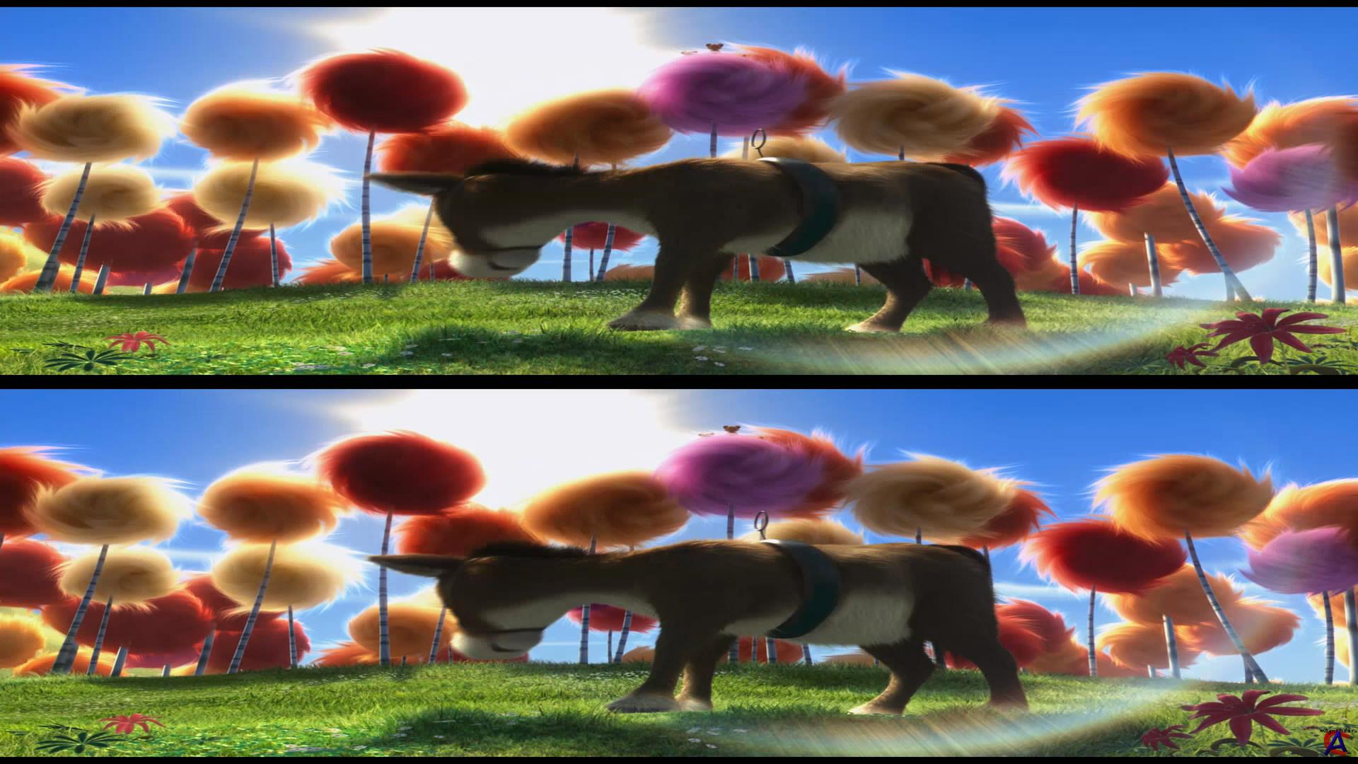 Качество:BDrip Формат 3D: Anamorph OverUnder Видео кодек: MPEG4 Video (H264) 1920x1080 23,98fps [ (Video 1)] Аудио кодек: Dolby AC3 48000Hz 6ch [Russian, Dub (Audio 1)] Dolby AC3 48000Hz stereo [Ukrainian, Дубляж (line) (Audio 2)] Dolby AC3 48000Hz 6ch [English, original (Audio 3)] Subtitle: UTF-8 [Russian, полные (Subtitle 1)] UTF-8 [English, full (Subtitle 2)] Жанр: мультфильм, фэнтези, комедия, семейный, Перевод: Профессиональный (дублированный) (Русский и Украинский) Премьера в мире: 1 марта 2012, Премьера в РФ: 8 марта 2012, «UPI» 3D Рейтинг mpaa: PG - Рекомендуется присутствие родителей Продолжительность: 86 мин. / 01:26 Информация о фильме: Недалекое будущее. Стоит нажать на кнопку и мир изменится по твоему желанию: прямо под окном вырастут горы, во дворе зашумит океан. Единственная неприятность все вокруг сделано из пластика. Но для влюбленного нет преград. Одно желание прекрасной девушки увидеть последнее живое дерево и он пускается в путь. Метод просмотра: Вертикальная стереопара. Смотреть через Stereoscopic Player и анаглиф очки