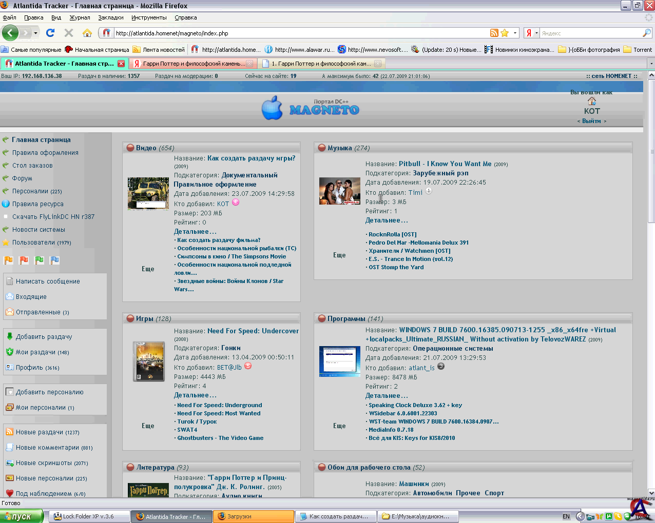 Качество почти DVD. Video: CRAM 1276x1020 15.00fps 3609Kbps Video. Звуковой поток отсутствует. Этот фильм предназначен для начинающих пользователей magneto, которые хотят создать раздачу, но не умеют. На данном примере курсором "мыши" показано, как правильно оформлять раздачу литературы. Уважаемые пользователи, atlantida.homenet/magneto/index.php , используйте это руководство для расширения всеми любимого сайта magneto и тогда мы узнаем очень многое о том, что находится у нас в сети.