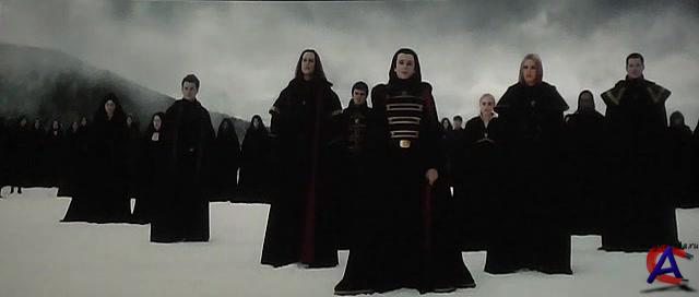 Качество: TeleSynch, AVI Видео кодек: XviD, 640x272, 25 fps, ~1694 kbps Аудио кодек: MP3, 48 kHz, 2 ch, ~256.00 kbps Жанр: фэнтези, драма, мелодрама, приключения, Перевод: Профессиональный (полное дублирование) Премьера в мире: 14 ноября 2012 Премьера в РФ: 15 ноября 2012, «West» Рейтинг mpaa: PG-13 - Детям до 13 лет просмотр не желателен Возраст: 12+ Продолжительность: 1:42:35 Информация о фильме: Белла, став вампиром, постепенно свыкается со своей новой природой. В этом ей помогают Эдвард и остальные члены семьи Калленов. К тому же теперь у Беллы есть дочь Ренесми и вечность впереди. Джейкоб, запечатленный с Ренесми, становится для девочки другом и наставником. Ненадолго для героев наступают спокойные, счастливые дни.Все заканчивается, когда вести о Ренесми доходят до Вольтури. «Обращение» детей строго запрещено в мире вампиров. Не зная о необычном происхождении Ренесми, Вольтури собирают армию и направляются в Форкс, чтобы уничтожить Калленов.