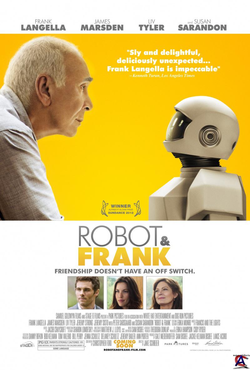 Качество: DVDRip Видео кодек: XviD, 720x304, 25 fps, ~1846 kbps Аудио кодек-1: 48 kHz, AC3 Dolby Digital, 3/2 (L,C,R,l,r) + LFE ch, ~384 kbps [Русский] Аудио кодек-2: 48 kHz, AC3 Dolby Digital, 2/0 (L,R) ch, ~192 kbps [английский] Жанр: фантастика, драма, комедия Перевод: Профессиональный (многоголосый закадровый) [лицензия] Премьера в мире: 20 января 2012 Рейтинг mpaa: PG-13 - Детям до 13 лет просмотр не желателен Продолжительность: 01:25:20 Информация о фильме: Фильм о трогательной дружбе старика и робота. История заключается в том, что пожилой мужчина, Фрэнк, в прошлом, кстати, вор-взломщик, живет в одиночестве. Его уже взрослые дети далеко, и чтобы хоть как-то помочь стареющему отцу, у которого начинает развиваться болезнь Альцгеймера, сын дарит Фрэнку робота-компаньона. Действие фильма происходит в не очень далеком будущем, роботы в домашнем хозяйстве вполне нормальное явление. Поскольку Фрэнк считает себя человеком самостоятельным и не желает, чтобы за ним кто-то или что-то присматривало, он с опаской относится к подаренному роботу.