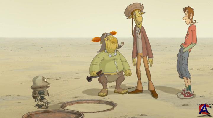 Качество: HDRip Видео кодек: XviD, 720*400, 23.98fps, ~1653kbps Аудио кодек: Dolby AC3, 5.1ch, 48000hz, 448kbps Жанр: мультфильм, фантастика, комедия Перевод: не требуется Премьера в мире: 11 апреля 2013 Премьера в РФ: 11 апреля 2013, «Наше Кино» Возраст: 6+ Продолжительность: 01:36:27 Информация о фильме: Начинающий диджей Толик и всемирно известный виолончелист Владимир Чижов встречают на шумной московской улице босого человека. Нажав на кнопку странной машинки, герои перемещаются на пустынную планету Плюк. Анимационный ремейк любимого всеми фильма «Кин-дза-дза!» не менее увлекательно и смешно, чем оригинал, рассказывает о приключениях Толика и дяди Вовы. В этом мире песка жители делятся на две категории пацаков и чатлан, простая спичка обладает невероятной ценностью, а людей встречают и провожают по цвету штанов.