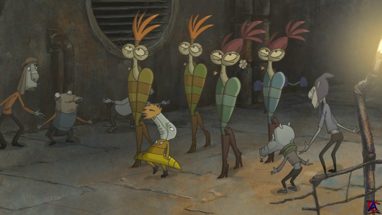 Качество: BDRip 720p Видео кодек: H.264, 71280x720, 23.98fps, ~4600kbps Аудио кодек: DTS, 5.1ch, 1509 kb/s Жанр: мультфильм, фантастика, комедия, слова Перевод: Не требуется Премьера в мире: 11 апреля 2013 Премьера в РФ: 11 апреля 2013, «Наше Кино» Возраст: 6+ Продолжительность: 1:36:27 Информация о фильме: Начинающий диджей Толик и всемирно известный виолончелист Владимир Чижов встречают на шумной московской улице босого человека. Нажав на кнопку странной машинки, герои перемещаются на пустынную планету Плюк. Анимационный ремейк любимого всеми фильма «Кин-дза-дза!» не менее увлекательно и смешно, чем оригинал, рассказывает о приключениях Толика и дяди Вовы. В этом мире песка жители делятся на две категории пацаков и чатлан, простая спичка обладает невероятной ценностью, а людей встречают и провожают по цвету штанов.