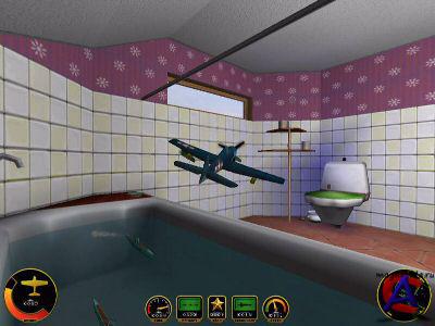 Жанр: Arcade / Simulator (Flight Combat) / 3D Язык: Русский Лекарство: Не требуется Размер: 62.2 Мб Свободное место на жестком диске: 230 Мб Разработчик: Paradox Interactive Издатель: EON Digital Entertainment Минимальные требования к игре Airfix Dogfighter: процессор: Pentium II память: 32 Мб видеокарта: 4 Мб Пожалуй, самая бредовая игра из всех существующих по сюжету и одна из самых интересных по игровому процессу. Airfix Dogfighter – это моделирование Второй мировой войны в воздухе в переделах отдельно взятого дома (!!!) с использованием самолётов и прочей техники соответствующих размеров.Когда в огромном доме никого нет, начинается нешуточная война, под потолком летают самолёты, в ванне плавают подводные лодки, а по полу ездят и стреляют танки. Без комментариев. Но вот если на секунду забыть об этом неимовернейшем бреде, то окажется, что перед нами очень и очень неплохая игра, своего рода смесь Descent, Crimson Skies и Re-Volt. А уж как тщательно и детально тут всё продумано! Образцы техники точно соответствуют реалиям тех времён, у вас есть свой ангар, есть топливо, которое кончается, есть боеприпасы, которые можно собирать по мере прохождения (откуда они, например, в вазе для цветов – обсуждать не будем), есть, наконец, различные миссии и даже выбор, за кого играть: за союзников или за немцев. Каждый «боевой вылет» быстро превращается в настоящую боевую операцию с участием десятков единиц наземной, воздушной, а иногда и водной техники. Игровой процесс крайне напряжён и динамичен, расслабиться нельзя ни на секунду – собьют, а если прибавить к этому просто роскошную трёхмерную графику с тщательнейшей прорисовкой всех деталей окружающей обстановки, то мы получим ещё одну изумительную малоизвестную игру.