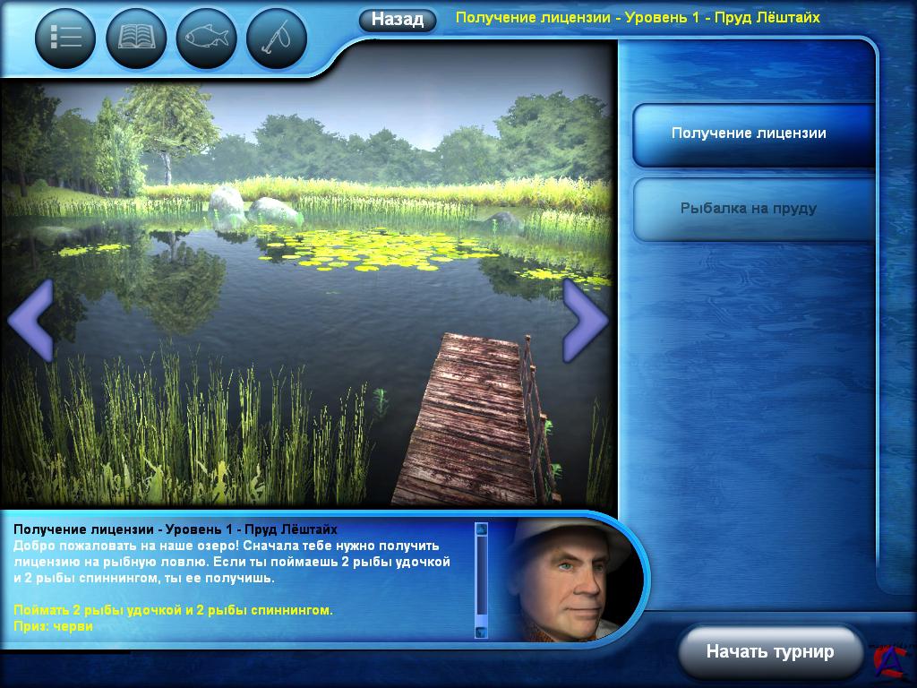 Большая рыбалка Системные требования: * Операционная система Microsoft® Windows® 2000/XP * Процессор Pentium® III / Athlon 700 МГц * 128 MБ оперативной памяти * 400 МБ свободного места на жестком диске * 3D-видеоадаптер GeForce 4 Ti или Radeon 9500 с памятью 64 МБ, поддерживающий DirectX® 9.0c * Звуковое устройство, совместимое с DirectX® 9.0c * DirectX® 9.0c Игра «Большая рыбалка» предлагает игроку пройти путь от новичка до рыбака-профессионала. Виртуальные просторы игрового мира «Большой рыбалки» – настоящий рай для рыбаков! Украшенные кувшинками пруды, бурные реки и скованные льдом озера манят обилием разнообразной рыбы. Карпы, угри, сомы, щуки – для ловли каждого вида необходимо подобрать снасти, наживку и, конечно же, стратегию, ведь каждая рыба отличается уникальным поведением. Виртуальная школа «Большой рыбалки» познакомит новичков с основами ловли. Энциклопедия даст исчерпывающую информацию о рыболовных снастях и особенностях поведения рыб. Особенности продукта: * Уникальный реалистичный симулятор рыбалки * Впервые в играх – режим подледного лова * Режим карьеры позволит новичку постепенно освоить все тонкости мастерства * Различные виды соревнований * Живописные рыбные места * Каждый вид рыбы отличается естественным поведением * Многопользовательская игра в режиме hot seat ИЗВЕСТНЫЕ ПРОБЛЕМЫ ------------------------------------------- На операционных системах Microsoft® Windows® 2000/ХР путь для установки программы должен состоять только из английских букв. Например: C:Program FilesNoviy DiskSport Fishing. Для правильной работы игры рекомендуется установить самые новые драйверы для вашего видеоадаптера, материнской платы и звуковой карты. Драйверы для видеоадаптеров ATi и nVIDIA вы можете найти в папке drivers на диске с игрой. Самые новые драйверы вы сможете скачать с сайта соответствующего производителя: www.nvidia.com www.ati.com www.powervr.com www.creative.com www.intel.com www.via.com.tw www.sis.com