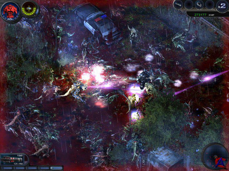 Системные требования: • Windows XP/Vista • DirectX 9 • 1.7 GHz • 512 MB RAM • Мышь Описание: Alien Shooter 2 - крупномасштабное продолжение популярнейшей аркады, получившей положительные отзывы от прессы и игрового сообщества. Новая часть игры предстанет перед игроками в совершенно новом виде: Небольшая аркадная стрелялка, посвященная тотальному геноциду инопланетных тварей и созданная для того, чтобы убить пару часов личного времени, выросла в полноценный action-боевик с элементами ролевой игры. Главнейшим нововведением Alien Shooter 2 стала сюжетная кампания с множеством побочных заданий, режимы командного сражения, тонны оружия и несколько видов боевой техники, включая боевых роботов! Вместе с тем, новая игра не только сохранила, но и преумножила неуемную динамику своей предшественницы: монстры в ней злее, герои – круче, а пушки – убойней! Особенности игры: • 17 игровых миссий • около 3000 существ на каждой карте с одновременным отображением до 50 монстров • возможность перемещения и боя с использованием техники, стрельба из стационарных орудий, управление роботами • управляемые компьютером персонажи, возможность командного боя • свыше 50 видов вооружения и более 20 различных приспособлений: фонарики, радары, аптечки, дроны