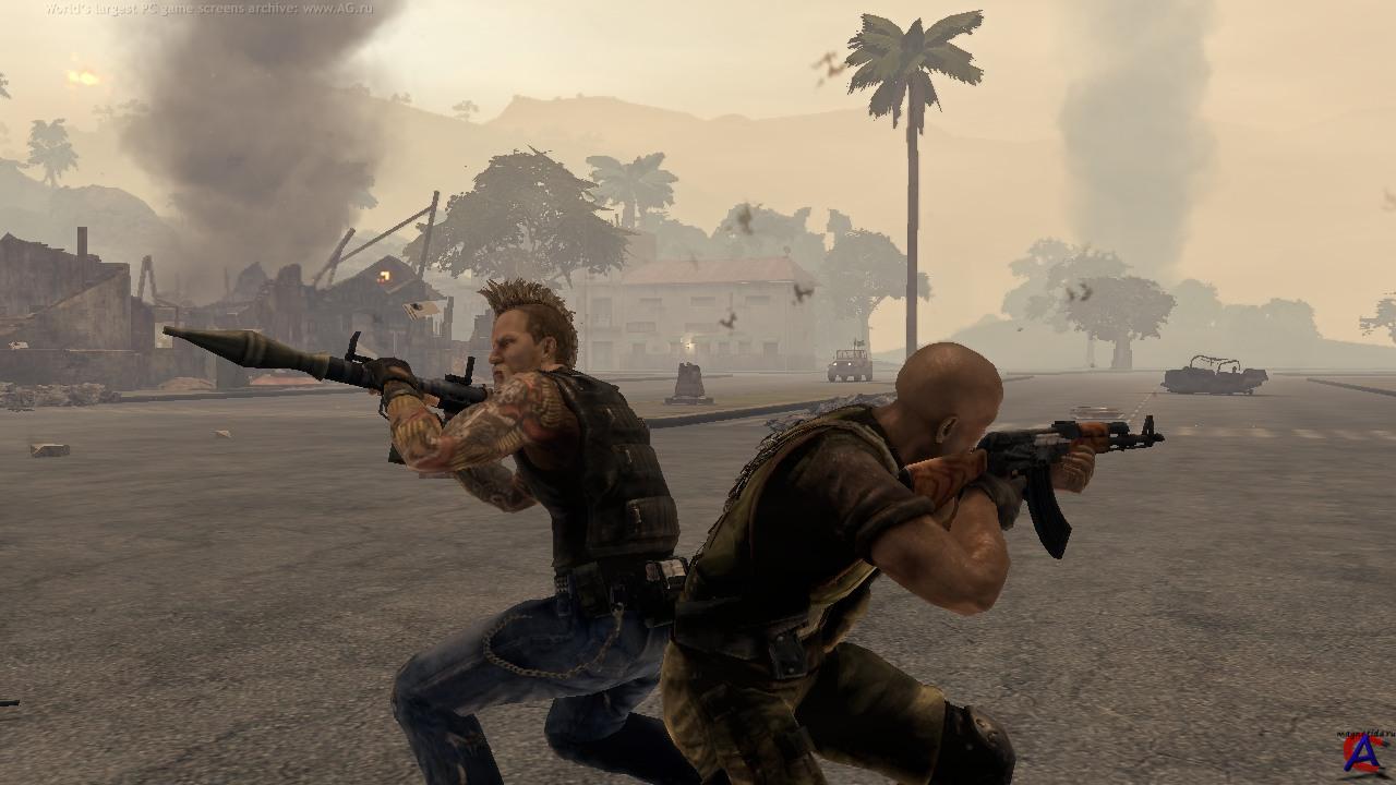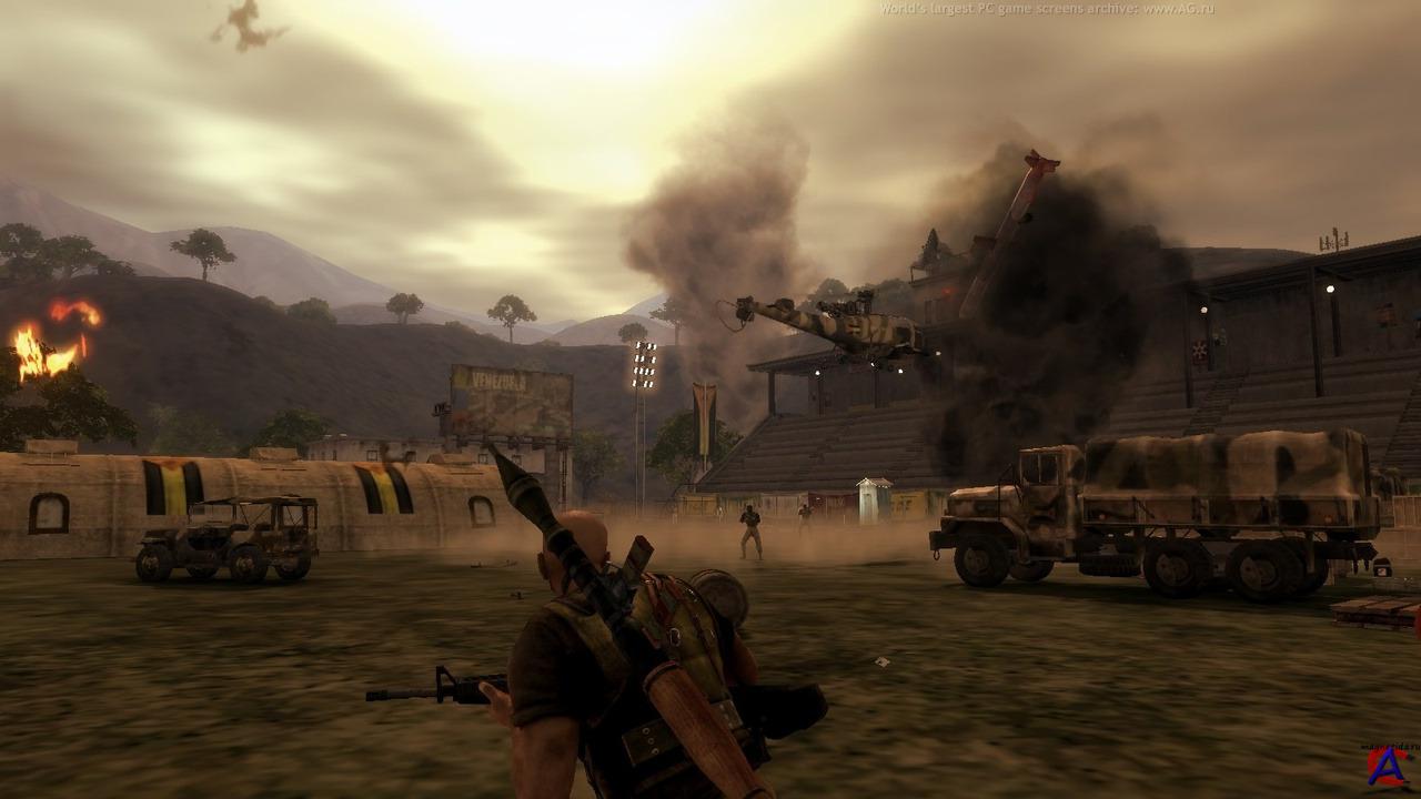 Описание: Они обучены убивать, уничтожать и крушить, они мастерски владеют любым видом оружия и в совершенстве освоили управление машинами, танками и самолетами. Они даже могут повлиять на ситуацию в целом государстве! Кто они? Наемники, готовые без лишних вопросов выполнить любое задание за солидный гонорар. К ним обращаются, когда не остается других вариантов. Как раз такая ситуация возникла в Венесуэле, где в результате гражданской войны к власти пришел жестокий и беспощадный тиран. Восстановить порядок и прекратить вооруженный конфликт — ваша задача. Для выполнения миссии можно использовать огромный арсенал, состоящий из самого разного вооружения: от пистолетов до ядерной бомбы. Техника тоже придется кстати — танки, бронированные машины, джипы и гоночные автомобили станут отличным подспорьем в бою. Огромный мир, населенный колоритными персонажами и коварными противниками, сурово наказывает за ошибки, но предоставляет массу возможностей для выполнения задуманного. Однако учтите — каждое действие имеет последствия, поэтому просчитывать свое поведение необходимо на два шага вперед. Особенности игры: •Тропический мир живет своей жизнью. Действие игры разворачивается на огромных территориях, населенных враждующими друг с другом группировками и необычными персонажами. Каждый ваш шаг отражается на балансе сил в Венесуэле, поэтому от глупых поступков лучше воздержаться. •Пламя революции! Обратите внимание на стихию огня. Устроив пожар, вы сможете серьезно «поджарить» окрестности — огонь перекидывается от здания к зданию в соответствии с законами физики. •Водные просторы — не преграда! В вашем распоряжении есть скоростные катера и роскошные яхты, с которыми ни один водоем не станет помехой. •Награда превыше всего! Клиенты щедро платят за услуги наемников, если те выполняют свои обязательства. Однако разменной монетой служат не только хрустящие банкноты, но также информация — ценный совет иногда дороже денег. •Распоряжайтесь финансами сами! Вы самостоятельно решаете, на что потратить гонорар, какое вооружение купить в первую очередь и где раздобыть самую современную технику. •Плечом к плечу с товарищами! Начните кампанию вместе с другом, покажите противникам всю мощь сплоченной команды! Атакуйте с разных сторон, устаивайте засады, прорывайтесь сквозь вражеские кордоны на тяжелой технике. Минимальные системные требования: •Service Pack: Windows XP SP3 •Processor: Pentium 4 with hyperthreading / AMD Athlon X2 •Memory : 1GB •GPU: Nvidia GeForce 6800 GT / ATI Radeon ATI X1600 •Video RAM: 256MB •Shader model: 3.0 •Media: 8x Dual layer DVD-ROM •Hard Drive: 10GB install + save data •Sound: DX 9.0c compatible Рекомендуемые истемные требования: •OS: Windows XP SP3 or Windows Vista SP1 •Processor: Pentium Core 2 Duo 2.66 GHz / AMD X2 4600+ 2.4 GHz •Memory : 2GB dual channel DDR RAM •GPU: Nvidia GeForce 8600 / ATI Radeon HD2600 •Video RAM: 512MB •Shader model: 3.0 •Media: 8x Dual layer DVD-ROM •Hard Drive: 10GB install + save data •Sound: DX 9.0c compatible