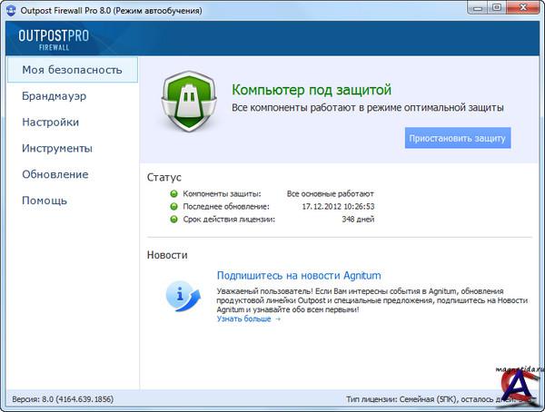 Версия программы: 8.0 (4164.639.1856.489) Язык интерфейса: ML-RU ОС: 32- и 64-битные версии Windows (Windows 8, Windows 7, Vista, Windows XP SP2+, Windows Server 2003 SP1+, 2008). Лекарство: в комплекте Agnitum Outpost Firewall - персональный брандмауэр, защищающий пользователей путем фильтрации входящего и исходящего сетевого трафика, контроля текущих соединений, выявления подозрительных действий. Чтобы полностью обезопасить вас от этих новых угроз, эффективное средство безопасности должно использовать многоуровневый подход, обеспечивая проактивную, основанную на анализе поведения, блокировку вместе с более традиционными, сигнатурными методами обнаружения. Оно также должно быть простым в использовании – потому что иначе оно не будет популярным.