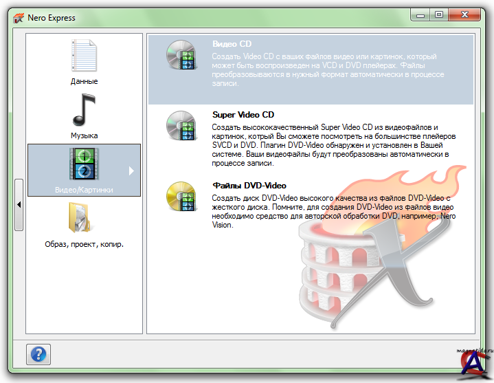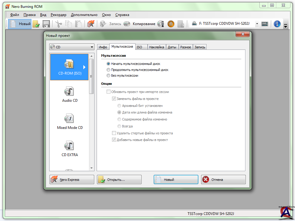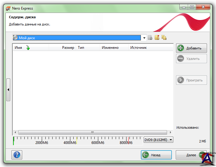 Nero BurningRom - NeroExpress 9.4.13.2 Micro RUS Версия:9.4.13.2 Платформа: XP/Vista/W7 Язык интерфейса: Русский Автор сборки: MKN Размер:20 МБ Nero Micro- представляет собой простую в освоении, но мощную программу для записи CD и DVD, а теперь еще Blu-ray и HD DVD. У этой программы удобный пользовательский интерфейс. Возможности программы таковы, что позволяют записывать компакт-диски всех существующих в настоящее время стандартов, в том числе, аудио и видео CD. В качестве источников информации для записи дисков могут выступать как файлы на вашем компьютере, так и другие компакт-диски. Nero Micro: - Nero Burning Rom - Nero Express Установка: 1. Кликнуть NM9.exe и подождать пока установится. 2. C:Program FilesNeroNero 9 ярлыки запуска программы можно достать здесь.