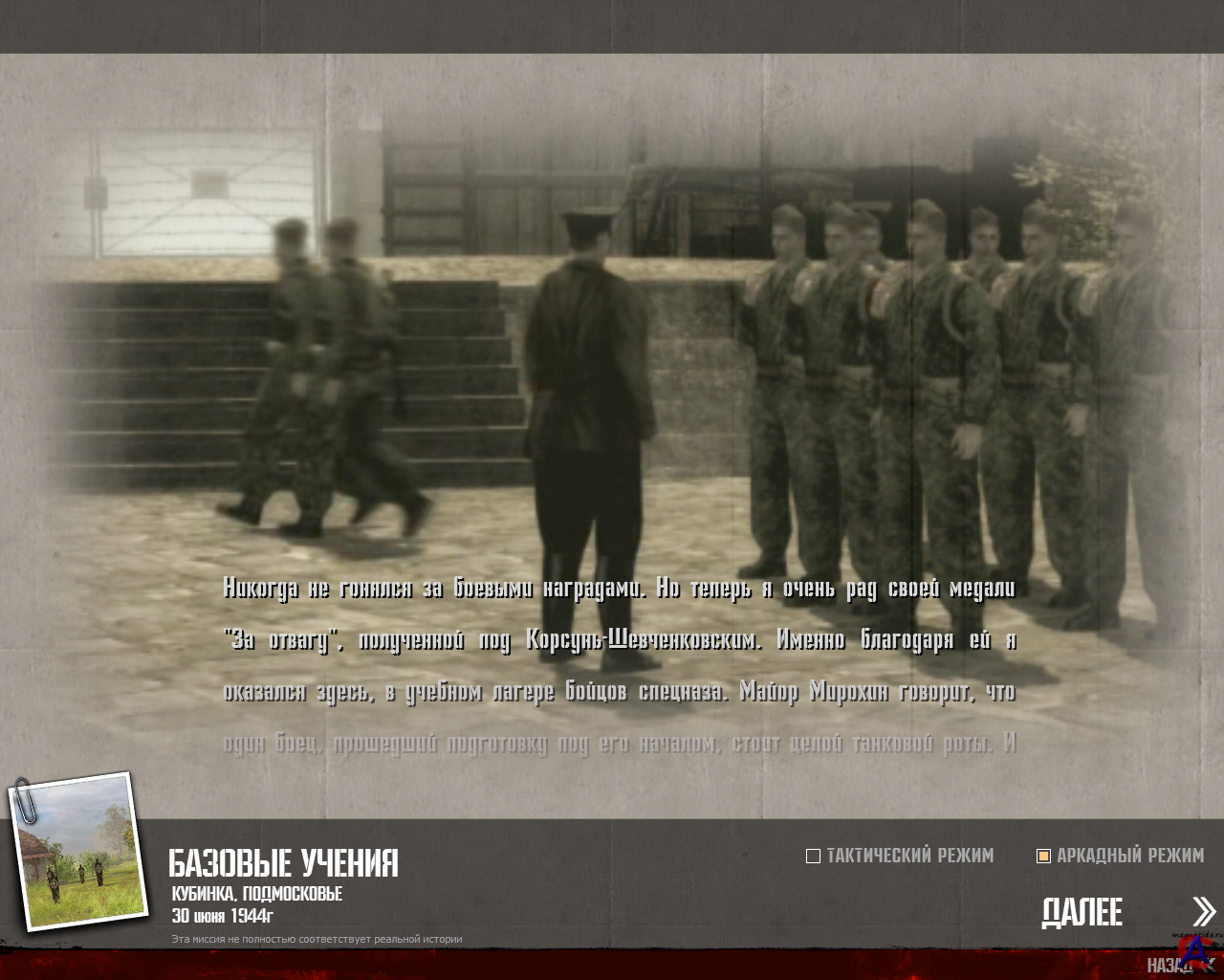 Минимальные системные требования: Операционная система: MS Windows 2000/XP, DirectX 9.0c Процессор: Intel Pentium IV 1,7 ГГц или AMD Athlon 2000+ Память: 512 Мбайт ОЗУ Видеокарта: 128 Мбайт, видеокарта класса GeForce 3 Ti500 или ATI Radeon 8500 Свободное место на ЖД: 4 Гбайт свободного места. Deamon Tools Кампании и исторические сражения: Игра "В тылу врага 2" посвящена заключительному этапу войны в Европе: лето 1944 – весна 1945. В этот период во Франции и Польше, в Бельгии, Голландии, Венгрии и Германии гремели грандиозные сражения. Немецкая военная машина напрягала все усилия, чтобы защитить территорию Третьего Рейха от советских и союзных армий. Но в течение 11 месяцев немецкое сопротивление было сломлено на всех фронтах и война завершилась там, где началась – в Берлине. Основные особенности: * Три десятка масштабных миссий - от высадки в Нормандии до взятия Берлина. * Сложные иерархические многокомпонентные объекты игрового мира с возможностью последовательного разрушения любых объектов. * Мощная система определения укрытий. * Высокоточная система видимости, учитывающая окна, разломы в стенах, кусты и пр. * Сложная система повреждений техники и строений, баллистический расчет траекторий пуль и снарядов. * Прямое управление любым юнитом. * Динамическая модификация ландшафта воронками от взрывов. * Широкий ассортимент стрелкового оружия, наземной, водной и воздушной техники, в том числе и амфибии. Современные 3D-технологии: * Glare/bloom lens effect для придания большей мягкости и сглаженности общей картине и подчеркивания динамики. * Bump-mapping для придания объема мелким деталям техники и строений. * Отражения на воде (небо, объекты). * Masked specular lighting для блестящих поверхностей (металлических). * Masked environment mapping для отражающих поверхностей (стекло, лед, полированный металл и т.п.). * Cross- / self-shadowing для объектов и земли. * Мультитекстурирование сложных объектов, включая pre-generated lightmaps. Уникальные особенности: * Мягкий «туман войны» * Ломающийся лед * Объемная высокодетальная трава (при приближении камеры к ландшафту)