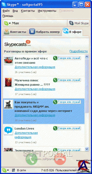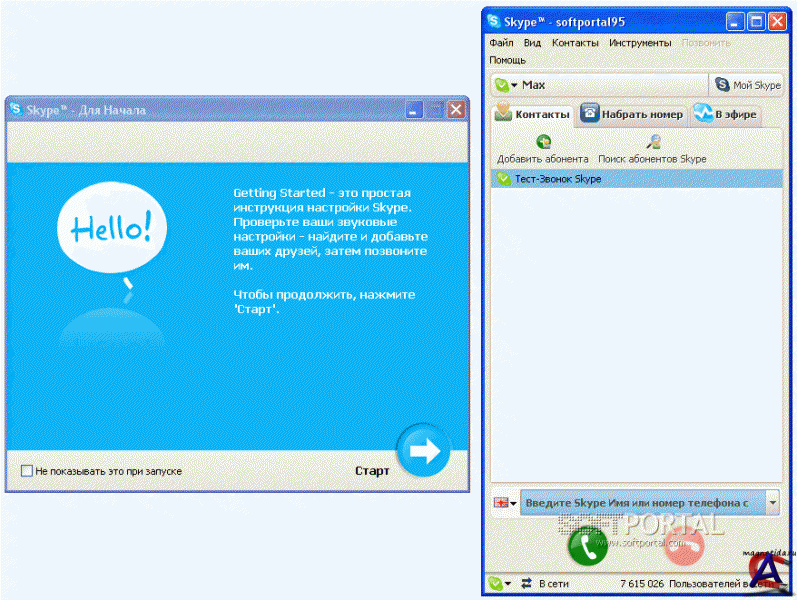 Skype - Это простая бесплатная программа, с помощью которой вы можете бесплатно звонить во все уголки мира. Skype создан авторами KaZaa. Сеть Skype базируется на прогрессивной P2P (peer-to-peer) технологии. Качество передачи голоса очень хорошее. Создатели программы специально консультировались со специалистами по акустике о том, как сделать искажения голоса менее заметными. Помимо превосходного качества звука, Skype предоставляет максимальную конфиденциальность - все общение между клиентами зашифровано и не может быть перехвачено. И самое главное, Skype не требует перенастройки вашего брандмауэра или маршрутизатора — он просто работает! Кроме этого программа позволяет общаться с помощью коротких текстовых сообщений. Начиная с версии 2.0 в программе Skype появилась возможность проводить видеконференции. Встроенная поддержка видео позволяет видеть окно с изображением собеседника либо в рабочем окне программы Skype, либо в отдельном окне, и даже в полноэкранном режиме. Особенности Skype: Неограниченные временем и расстоянием звонки другим абонентам Skype Превосходное качество звука – лучше, чем в обычном телефоне Работа со всеми брандмауэрами, NAT и роутерами без конфигурирования! Список абонентов показывает вам доступность ваших друзей Skype для общения Ваши беседы зашифрованы от и до для максимальной секретности Основан на технологии peer-to-peer, развитой создателями Kazaa и Joltid