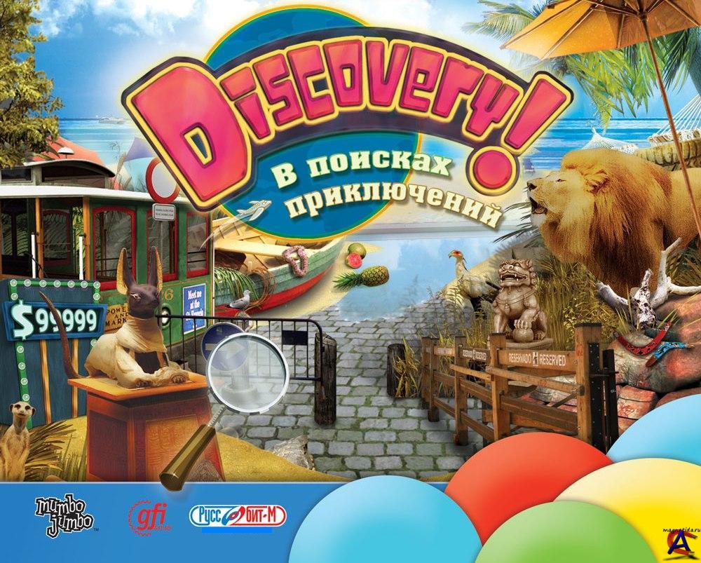 Минимальные системные требования Операционная система: Windows 2000/XP/Vista Процессор: Pentium 4 1GHz Память: 512 МБ Видеокарта: 128 МБ Аудиокарта: Совместимая с DirectX 9.0c Свободное место на ЖД: 100 МБ Информация об Игре Название: Discovery. В поисках приключений Оригинальное название: Discovery. В поисках приключений Год выхода: 2009 Жанр: Квесты,Я ищу Разработчик: MumboJumbo Выпущено: «Руссобит-М»/GFI Язык: только русский Лекарство: Не требуется Описание: Хочешь съездить в увлекательное мировое турне? Крути барабан, чтобы узнать, в какой уголок мира ты отправишься на этот раз. Находи спрятанные предметы, опережая соперников. По завершении каждого уровня тебя ждут увлекательные мини-игры. Завораживающие виды, реалистичные звуковые эффекты, динамика и азарт - в увлекательной приключенческой игре!