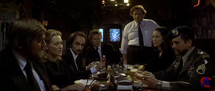 Качество: DVD-rip. Перевод: Многоголосый (закадровый), русский. Video: 720x304 (2.37:1), 23.976 fps, XviD build 50 ~1623 kbps avg, 0.31 bit/pixel Audio 1: 48 kHz, AC3 Dolby Digital, 3/2 (L,C,R,l,r) + LFE ch, ~384.00 kbps avg Audio 2: 48 kHz, AC3 Dolby Digital, 3/2 (L,C,R,l,r) + LFE ch, ~256.00 kbps avg Жанр: драма, военный, Премьера в мире: 8 декабря 1978 Рейтинг mpaa: R - Лицам до 17 лет обязательно присутствие взрослого Продолжительность: 183 мин. __________________________________________________________________________________________________________ Фильм о четырех американцах русского происхождения, их жизни до, во время и после войны во Вьетнаме. Картина наполнена волшебным очарованием, печалью, трагизмом и потрясает истинной человечностью. Один из тех фильмов, о которых единодушно говорят как о самом любимом. __________________________________________________________________________________________________________ Награды: Премия Японской киноакадемии и «Голубая лента» за лучшую иностранную картину в Японии по итогам 1979 года, включён в 1996 году в Национальный регистр фильмов. Британская академия, 1980 год Победитель (2): * Лучшая работа оператора * Лучший монтаж Номинации (7): * Лучший фильм * Лучшая мужская роль (Роберт Де Ниро) * Лучшая женская роль (Мэрил Стрип) * Лучшая мужская роль второго плана (Кристофер Уокен) * Лучший режиссер (Майкл Чимино) * Лучший сценарий * Лучший саундтрек Оскар, 1979 год Победитель (5): * Лучший фильм * Лучшая мужская роль второго плана (Кристофер Уокен) * Лучший режиссер (Майкл Чимино) * Лучший звук * Лучший монтаж Номинации (4): * Лучшая мужская роль (Роберт Де Ниро) * Лучшая женская роль второго плана (Мэрил Стрип) * Лучший сценарий * Лучшая работа оператора Золотой глобус, 1979 год Победитель (1): * Лучший режиссер (Майкл Чимино) Номинации (5): * Лучшая мужская роль (драма) (Роберт Де Ниро) * Лучший фильм (драма) * Лучшая женская роль второго плана (Мэрил Стрип) * Лучшая мужская роль второго плана (Кристофер Уокен) * Лучший сценарий
