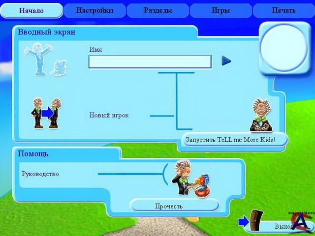 Прежние разработки Auralog в области электронных речевых тренажеров были известны у нас в основном только специалистам. Для программ обучения иностранным языкам Auralog активно использует новейшие достижения компьютерной мысли, в том числе технологии распознавания речи для автоматической оценки произношения ученика и так называемые графики произношения, когда на экран выводятся и сравниваются осциллограммы речи ученика и диктора. Стоит ли говорить, что программы Auralog всегда выглядели очень серьезно и требовали от пользователя кропотливой, вдумчивой работы. В первую очередь они были ориентированы, конечно же, на взрослую аудиторию, в том числе на профессионалов: менеджеров, работников сферы обслуживания, летчиков. При разработке нового учебника специалисты Auralog поставили перед собой оригинальную задачу - адаптировать проверенные методики для детей. Результатом стала необычная программа, получившая благосклонные отзывы европейской компьютерной критики в 1999-2000 годах. Так, газета Pc Plus (Мадрид) утверждала, что"программа одновременно отражает все более или менее важные аспекты языка, работа с которыми может потребоваться учащемуся", а брюссельская Le Soir без стеснения назвала Tell me More Kids шедевром. Программа занимает шесть компакт-дисков и состоит из трех частей. Первая - для самых маленьких, от 4 до 6, вторая - для детей от 7 до 9, а третья - для юных пользователей 10-12 лет. Новый учебник примечателен своей методикой. При более близком знакомстве с ним видно, что технологические чудеса здесь далеко не самое главное. Тренировка произношения с помощью графиков есть буквально во всех разделах, но требовательность компьютера заметно снижена? программа не слишком фиксирует внимание на этих упражнениях и превращает тяжелую работу в необязательную игру. По-настоящему революционное достижение"Правильного английского"в другом: продуманная система словарных игр действительно очень близка к тому, чтобы заменить живого учителя. Стержень программы составляет словарь, разбитый на несколько десятков тем, на который в свою очередь"нанизаны"полные игровых упражнений разделы. Лексика изучается скрупулезно и всесторонне: ученик совместно с программой как бы вертит слова в руке, перебирает их по буквам и слогам, слушает, произносит и тренирует произношение - и незаметно для себя запоминает. Многие игры курса не ставят перед учащимся прямой задачи вспомнить слово. Оно уже написано в углу экрана, нам нужно только повнимательнее посмотреть на него и подставить в кроссворд нужные буквы или найти замаскированное слово в заполненном буквами квадрате, или просто услышать его, отыскав по ходу дела нужную картинку. Однако компьютерная игра тем временем незаметно напрягает память и внимание ученика, и вот на эту подготовленную почву мягко ложится учебный материал. Так совершается маленькое чудо. Машина не просто контролирует человека, время от времени развлекая его анимацией, музыкой или картинками, - это несложно, и это делают уже многие обучающие программы."Правильный английский"способен именно обучать пользователя - правда, пока еще только словам, а не фонетике и не грамматике. Внимание к лексике вообще характерно для учебников, адресованных начинающим. Контролирующие функции выполняются программой осторожно и очень последовательно. В некоторых игра