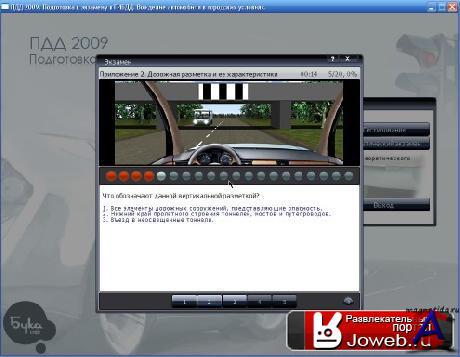 Оригинальное название: ПДД 2009. Подготовка к теоретическому экзамену в ГИБДД Год выпуска: 2009 Разработчик: Бука Софт Издатель: Бука Интерфейс: Русский Минимальные системные требования: Операционная система: Windows XP/Vista Процессор: Pentium III 900 МГц Память: 256 МБ Видеокарта: 64 МБ, DirectX 9.0с Свободное место на ЖД: 500 МБ CD-привод: 16х О программе: Вам предстоит сдавать экзамен в ГИБДД, и вы хотите быть на 100 уверены в своих знаниях? Теперь у вас есть возможность не только познакомиться с Правилами Дорожного Движения, но и протестировать полученные знания, решая тематические задачи и отвечая на экзаменационные билеты. Проверка знаний проводиться в двух режимах: Тестирование знаний по ПДД и сдача экзамена, полностью имитирующего предстоящее испытание в ГИБДД. Не бойтесь ответить неправильно! Сразу по завершении экзамена вам будет предложено повторить разделы ПДД, в которых вы совершали ошибки. Это сэкономит время и позволит восполнить пробелы по конкретным темам. Особенности программы: - Новые экзаменационные билеты 2009 года. - Полный текст ПДД с последними изменениями на 2009 год. - Новая таблица штрафов, включающая изменения, вступившие в силу 1 июля 2008 года. - Теоретический экзамен, полностью имитирующий экзамен в ГИБДД. - Подробные пояснения по всем вопросам экзамена. - Полезная информация: правила сдачи экзаменов, регистрация транспортных средств, прохождение технического осмотра, адреса МРЭО в крупных городах с режимами их работы.