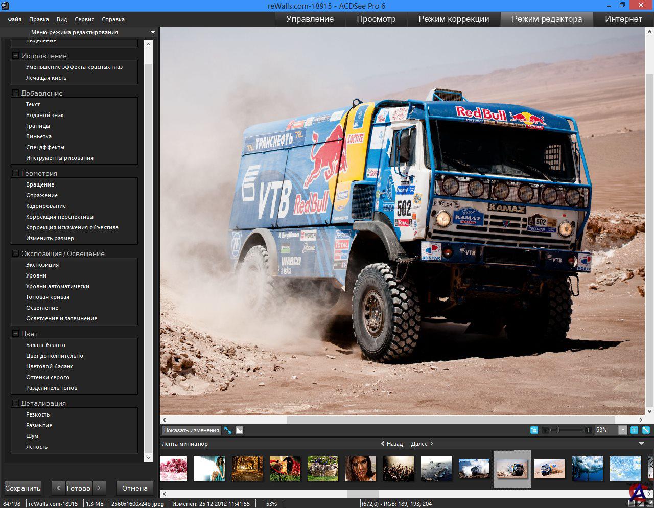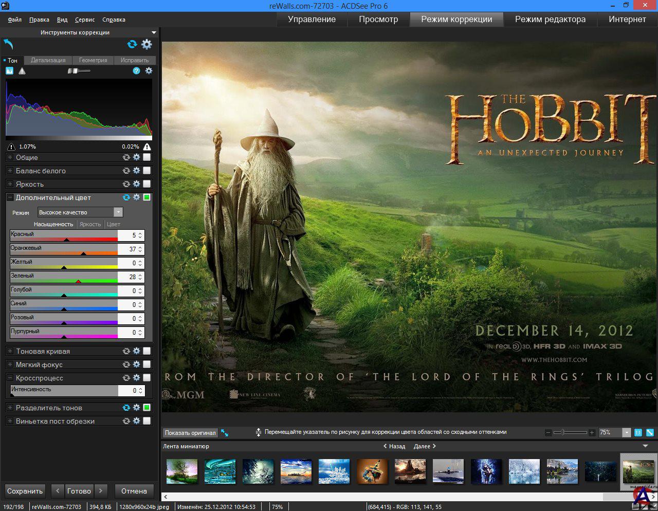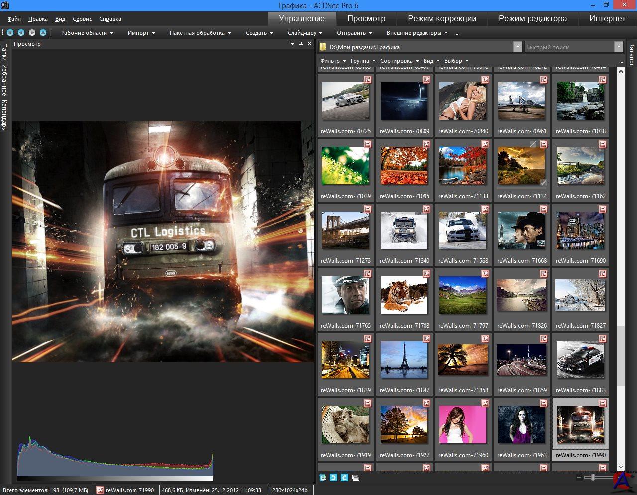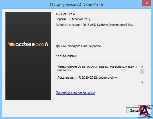 Версия программы: 6.2 Build 212 Язык интерфейса: ML-RU ОС: Microsoft Windows XP with Service Pack 2, Windows Vista, Windows 7, Windows 8 Лекарство: присутствует / вылечено ACDSee Pro 6 - профессиональная программа для работы с цифровыми фотографиями, которая обладает расширенным набором функций, рассчитанных на профессиональных фотографов. Поддерживает более 100 форматов графических файлов, позволяет работать с RAW-изображениями, автоматически сортировать фотографии по параметрам, полученным из цифровых фотокамер, содержит эффективный визуальный метод добавления к изображениям метатегов и быструю пакетную обработку большого количества картинок, в том числе и в RAW формате. Продукт позволяет просматривать, редактировать, систематизировать, публиковать и архивировать каталоги фотографий. Кроме того, осуществляется поддержка и обработка RAW файлов, имеются мощные средства систематизации, такие, как настраиваемые папки и категории, функции быстрого редактирования, визуальная маркировка и поддержка управления цветом для ICC и ICM профайлов, которые отвечают всем профессиональным потребностям пользователей. Продукт помогает существенно упростить процесс обработки цифровых фотографий от начала до конца.