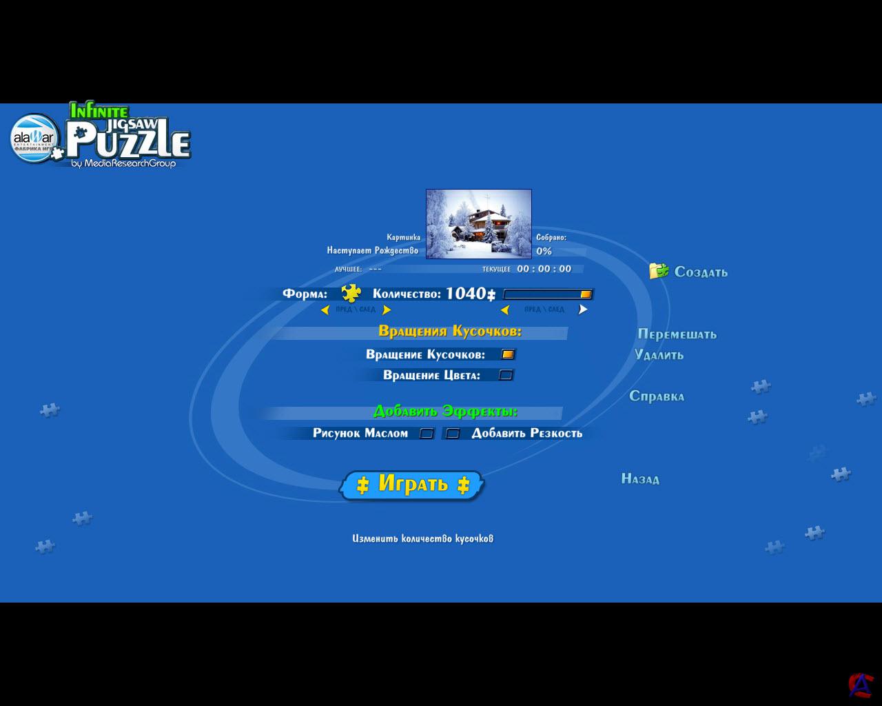 Разработчик: Alawar Entertainment Издатель: Alawar Entertainment Платформа: PC Язык интерфейса: только русский Таблетка: Не требуется (Извлекаем архив и играем). Системные требования для игры "Бесконечные пазлы": PII-600 / 64M RAM / 16M Video 3D, Windows XP, DirectX 9.0 Категория игры: Головоломки Бесконечный пазл – эта игра, которая созданная в лучших традициях своей многовековой истории, она сочетает в себе все самые лучшие качества предшественниц. Эта игра просто прекрасно развивает память, внимание, аккуратность и усидчивость. Эта игра приготовила для вас множество готовых мозаик, которые разбиты на восемь тем. Вы сможете выбрать любой рисунок, который наиболее подходит под ваше настроение. К каждому рисунку вы сможете добавить множество специально созданных спецэффектов. Помимо этого вы сможете даже создать собственное игровое поле, выбрав понравившееся вам изображение. Эта игра приятно порадует вас своей красочной графикой и занимательным музыкальным сопровождением. Эта логическая аркада идеально подойдет и юным и взрослым любителям логических задачек. Благодаря Бесконечным пазлам вы сможете провести много приятных минут, не отходя от монитора вашего компьютера.