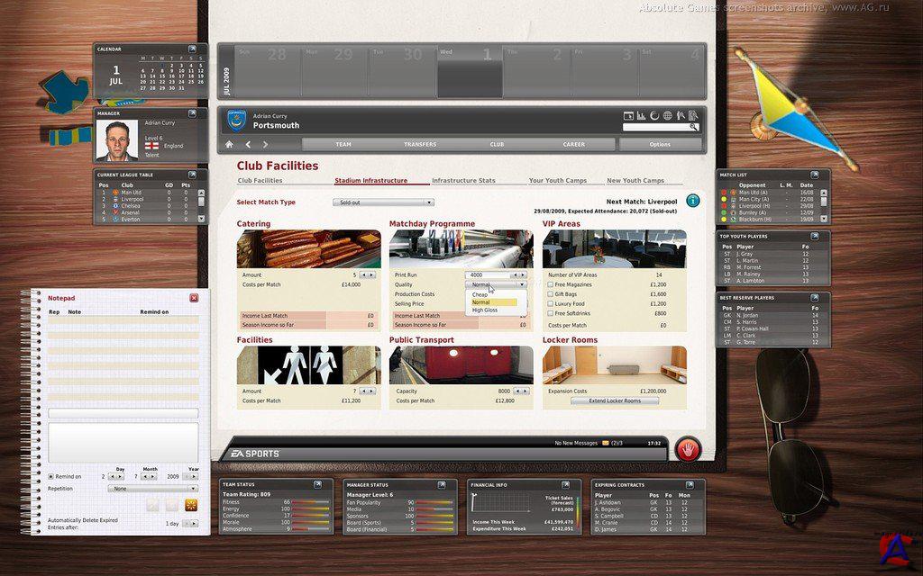 Минимальные системные требования: > Операционная система: Windows® XP/Vista > Процессор: PENTIUM 3 1.3 GHZ > Оперативная память: 1024 MB > Видеокарта: DirectX 9.0c совместимая видеокарта с минимум 64MB оперативной памяти > Звуковая карта: DirectX совместимая аудиокарта > Свободное место на жестком диске: 12 GB Описание: FIFA MANAGER 10 действительно даст игрокам возможность решить, кто лучший менеджер. Впервые в нем буде использована функция он-лайн игры по LAN или через интернет. Что касается офф-лайн версии игры, то в этом году включены новые функции только по запросу наших фанатов. Более 400 улучшений удалось произвести. Теперь Ваш футбольный клуб полностью в Вашем распоряжении. Вы ответственны за расстановку игроков, тактику, тренировки. Вы будете подписывать новых игроков, улучшать свою инфраструктуру и стадион. Особо отметим режим играющего менеджера, менеджера сборной, создание своего клуба и прогноза матчей. Улучшены многие тактические опции. Всю необходимую информацию по игроку можно получить, просто кликнув по нему во время игры. Новые виды камер (с тренерской скамейки, с высоты птичьего полета, с конкретного игрока) дадут больше возможностей для анализа матча. Инфраструктура стадиона - думайте о продаже еды, размещении магазинов, остановок общественного транспорта, VIP-зонах, раздевалках. Получайте максимальный доход и сделайте ваших болельщиков счастливыми! Новая система помощи - теперь вы часто будете встречать кнопку "Информация", которая поможет вам сориентироваться и объяснит все необходимое. Тут же можно будет получать и "инсайдерские" подсказки по игре. Желания фанатов - церемония выбора лучшего игрока; перевод персонала на различные должности, фотографии игроков при расстановке состава; автоматические замены; больше, чем одна цель для тренировки; предложение на аренду прямо из резерва; четыре различных расстановки; временный перевод игрока в резерв; прямые предложения другим клубам; натурализация игрока с двойным гражданством; скауты в сборной; изменяемые флаги болельщиков в 3D режиме - это всего лишь несколько примеров тех пожеланий фанатов, которые были осуществлены в FIFA Manager 10. Ключ 1GMV-HK7K-9ABC-QEFG-HIJK