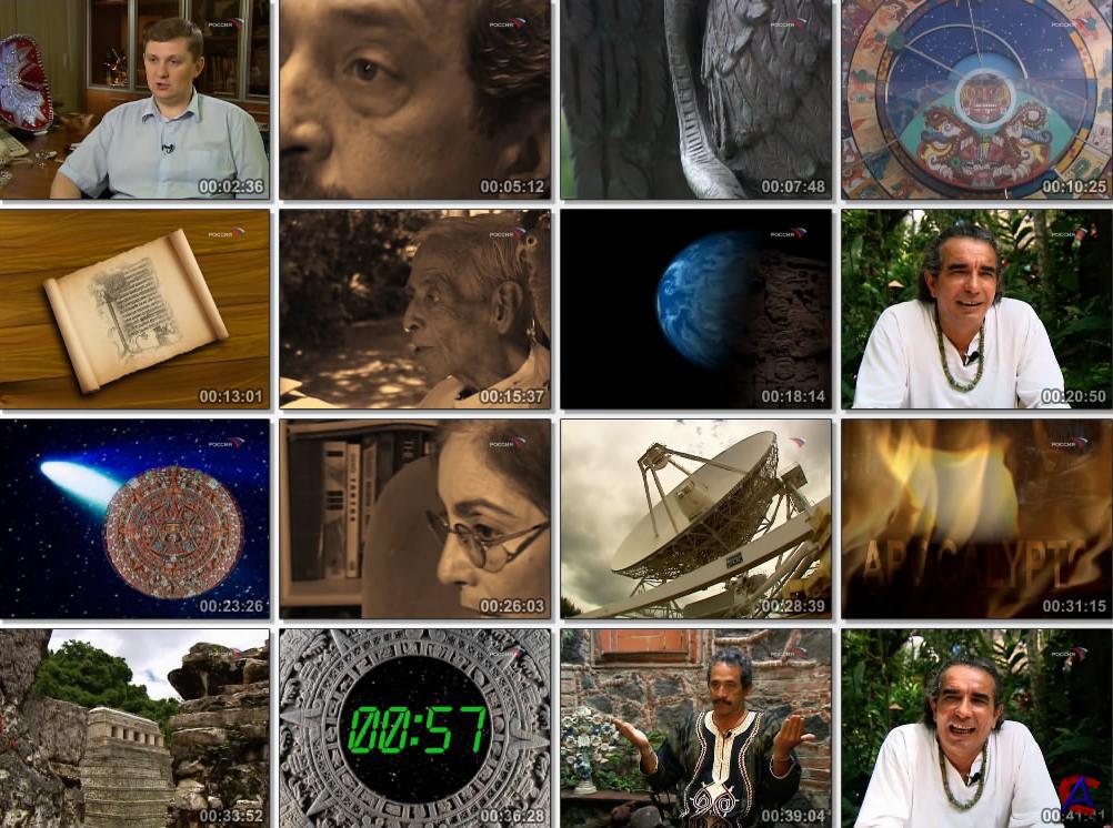 Качество: SATRip Видео кодек: DivX, 1129 Кбит/с, 640x464 Аудио кодек: MP3, 2 ch, 128 Кбит/с Продолжительность: 00:44:15 Выпущено: РТР Страна: Россия Перевод: не требуется Формат: AVI Информация о фильме: Древняя цивилизация, которую принято называть "индейцы майя", исчезнувшая с лица земли еще за пятьсот лет до открытия Америки, оставила после себя немало загадок. Одна из самых главных - календарь, до сих пор изумляющий современность своей точностью. Согласно этому календарю эпоха так называемого "Пятого солнца", в которой живет нынешнее человечество, заканчивается 21 декабря 2012 года. Что будет после этого, неизвестно никому… Существует немало исследований "проблемы 2012", как принято называть эту дату среди поклонников сакральных тайн. Авторы фильма "Апокалипсис-2012" совершили путешествие в Мексику, на руины древних цивилизаций, и встретились с людьми, всерьез верящими в пророчества майя, и скептиками - представителями традиционной науки. Перемены обязательно произойдут. Только не в смысле "конца света", или какого-то катаклизма. Должен измениться сам человек - он станет благороднее, добрее. Именно об этом, если внимательнее прочесть манускрипты, и хотели поведать наши мудрые предки.