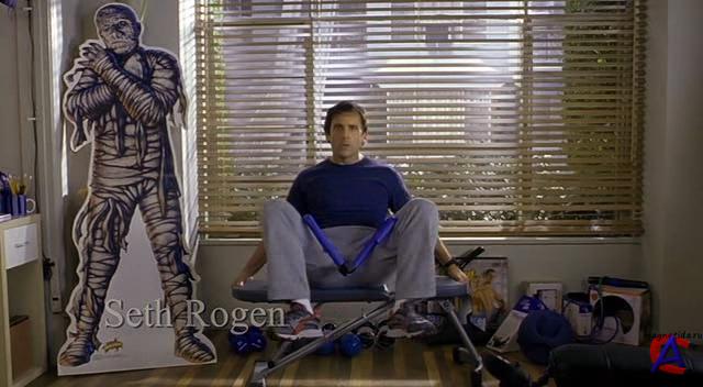 Знаете ли вы, что... -->> Около 15 минут материала пришлось удалить из финальной версии фильма, чтобы избежать получения рейтинга NC-17 (самый жесткий рейтинг из ныне существующих, как правило, администрация кинотеатров предпочитает не связываться с такими картинами). -->> Съёмка сцены, в которой Энди удаляют волосы на груди, потребовала присутствия пяти камер. Актер Стив Карел, посовещавшись с режиссером, принял решение обойтись без спецэффектов и прочих примочек, и на самом деле удалить волосы. «Сцена должна выглядеть по-настоящему, зритель почувствует подвох, если мы попытаемся схалявить, и не будет смеяться». Логично, что сцена была отснята с одного дубля.