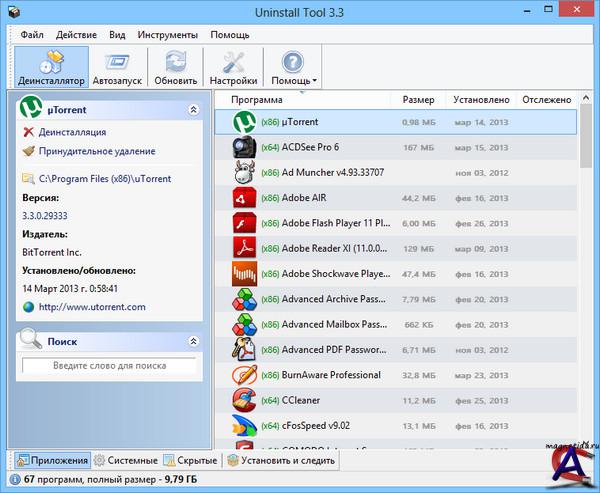 Версия программы: 3.3.0 Build 5305 Язык интерфейса: ML-RU ОС: Windows 2000/XP/Vista/7/8 Лекарство: вылечено Uninstall Tool - это очень мощная и надежная альтернатива для стандартных приложений Windows по установке / удалению программ. Это быстрый, безопасный и удобный способ удалить ненужные Вам приложения и повысить скорость работы Вашего компьютера.