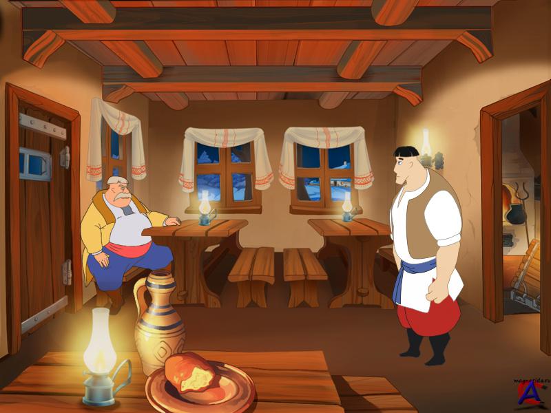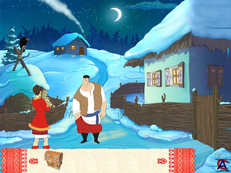 Жанр Квест Разработчик Step Creative Group Издатель 1C Дата выхода 16 декабря 2005 года Минимальные * Система: Windows 98SE/2000/XP; * Процессор: 500 МГц; * Память: 256 Мб; * Видео-карта: совместимая с DirectX 9, 64 Мб ОЗУ; * Аудио-карта: совместимая с DirectX; * Жесткий диск: 1,4 Гб свободного места; * DirectX 9. Рекомендуемые * Система: Windows 98SE/2000/XP; * Процессор: 1000 МГц; * Память: 512 Мб; * Видео-карта: совместимая с DirectX 9, 128 Мб ОЗУ; * Аудио-карта: совместимая с DirectX; * Жесткий диск: 1,4 Гб свободного места; * DirectX 9. Все читали - или проходили в школе - гоголевские "Вечера на хуторе близ Диканьки". Все помнят кузнеца Вакулу, летавшего в Петербург на черте; Хому Брута и повелителя нечисти - Вия; ведьму и русалок из "Майской ночи". В повестях Гоголя волшебное и обыденное идут рука об руку; дьяк и урядник соседствуют с колдунами и оборотнями. На этом фоне, близ украинской деревушки 18-го века, Диканьки, и разворачивается действие игры. Главный герой игры - деревенский кузнец Вакула - влюблен в первую красавицу Диканьки Оксану. Но Оксана выдвигает, казалось бы, невыполнимое требование: добыть ей сапожки, "какие носит сама царица". С этого и начинаются приключения влюбленного Вакулы, когда привычная деревенская жизнь вдруг поворачивается к нему своей волшебной, потаенной стороной. Ему доведется общаться с бывшим казаком, а ныне деревенским знахарем Пацюком. Колдун Пацюк становится проводником героя в волшебный мир – мир, где причудливо переплетаются чудеса и привычное. Вакула с удивлением узнает, что среди деревенских дивчин и парубков могут скрываться колдуны, ведьмы и упыри. И это только начало... Особенности игры: * «Вечера на хуторе близ Диканьки» — захватывающий квест, созданный по мотивам произведений Н.В.Гоголя. * Живые колоритные персонажи, знакомые с детства. * Красочная мультипликационная графика. Установка: 1. Монтировать Dikanka1.mdf диск с помощью atlantida.homenet/magneto/topic.php?type=show&code=3472 DAEMON Tools Lite 4.35.5.0068 начать установку. 2. При запросе второго диска монтировать Dikanka2.mdf, продолжить установку. 3. По завершении установки монтировать первый диск Dikanka1.mdf и начать игру.
